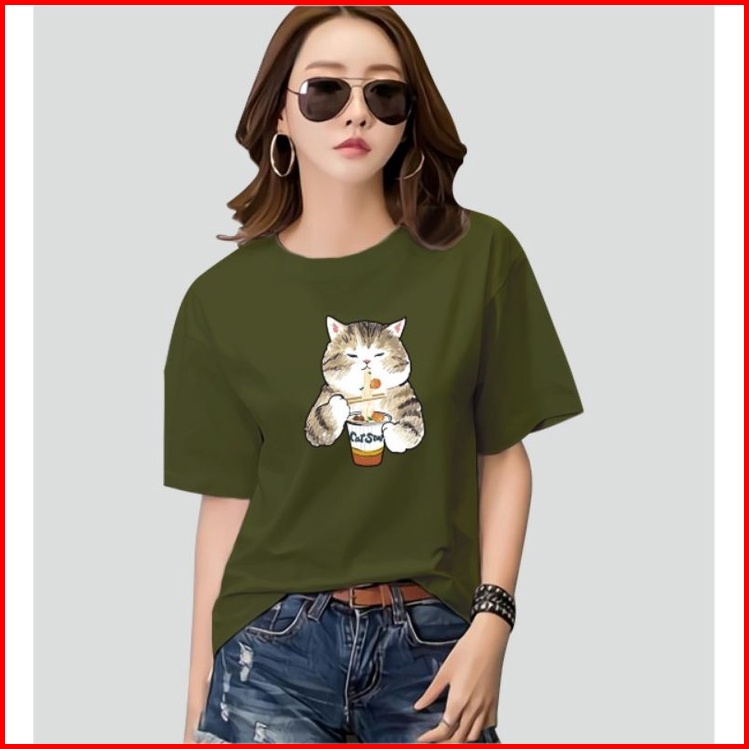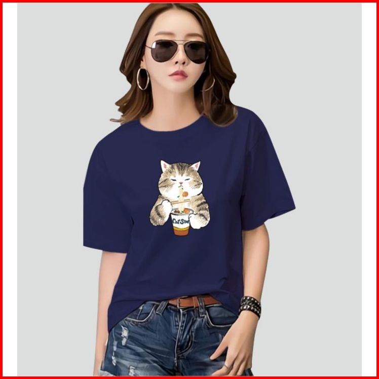 Kaos Wanita Oneck Cat Star Cotton Combed 30s