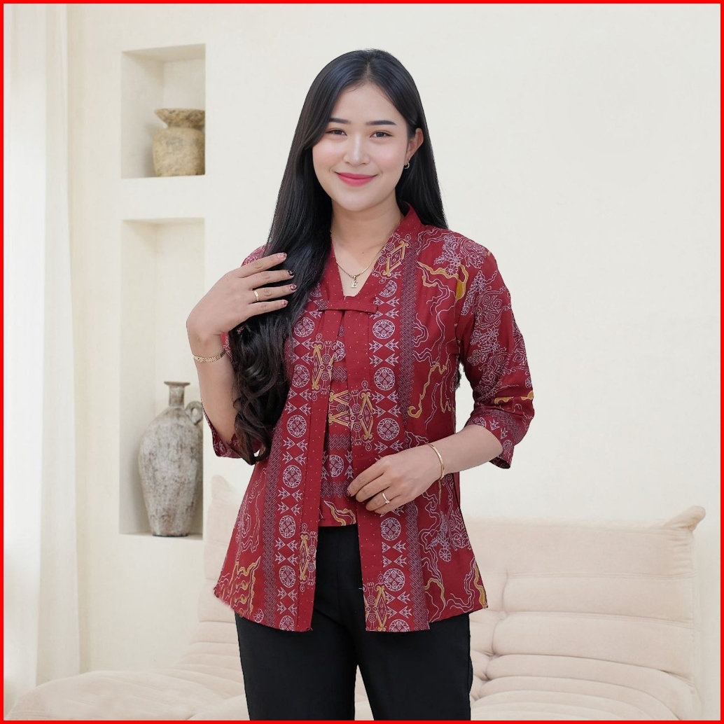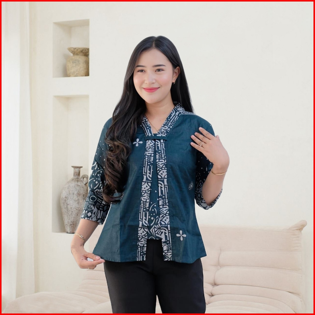 Baju Batik Wanita Modern Monalisa Blouse Batik Kerja Bahan Katun Atasan Baju Batik Wanita Premium