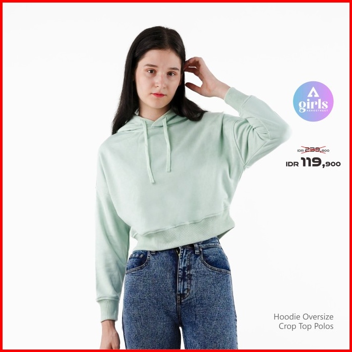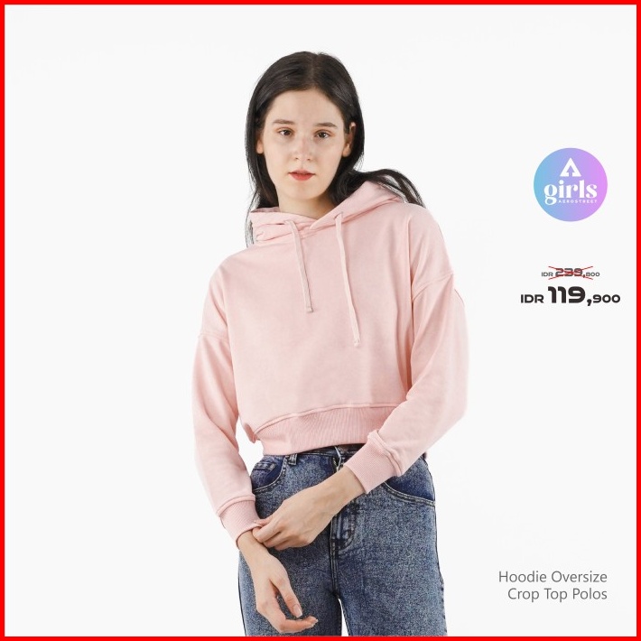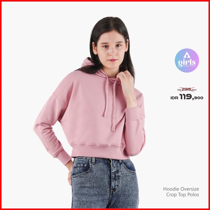 Aerostreet Hoodie Oversize Crop Top Polos Cerah Woman Kbd01