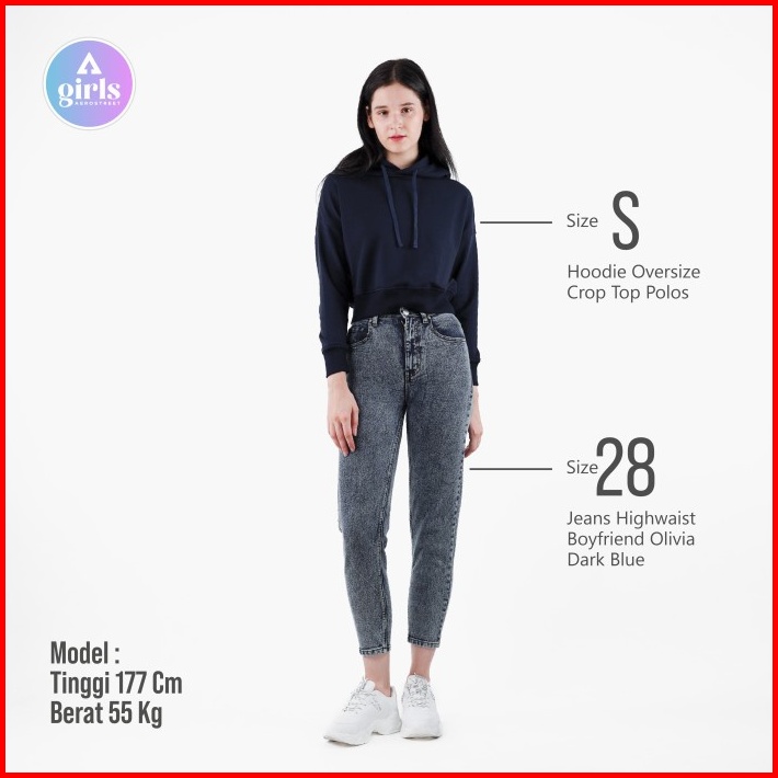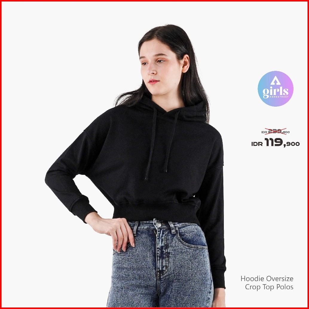 Aerostreet Hoodie Oversize Crop Top Polos Gelap Woman Kad01