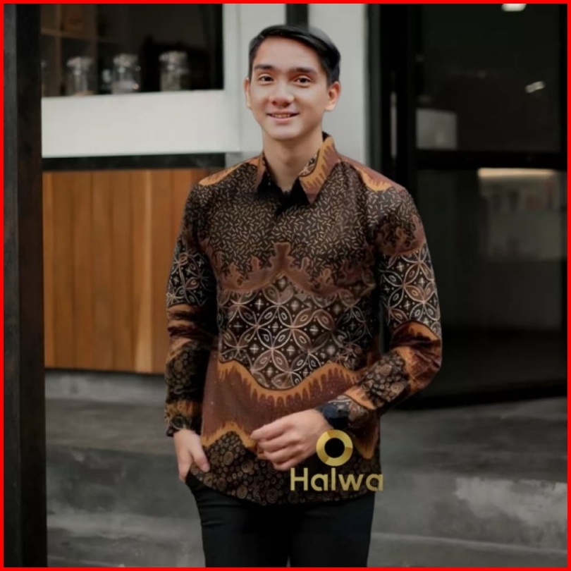 Kemeja Batik Pria Lengan Panjang Katun Modern Atasan