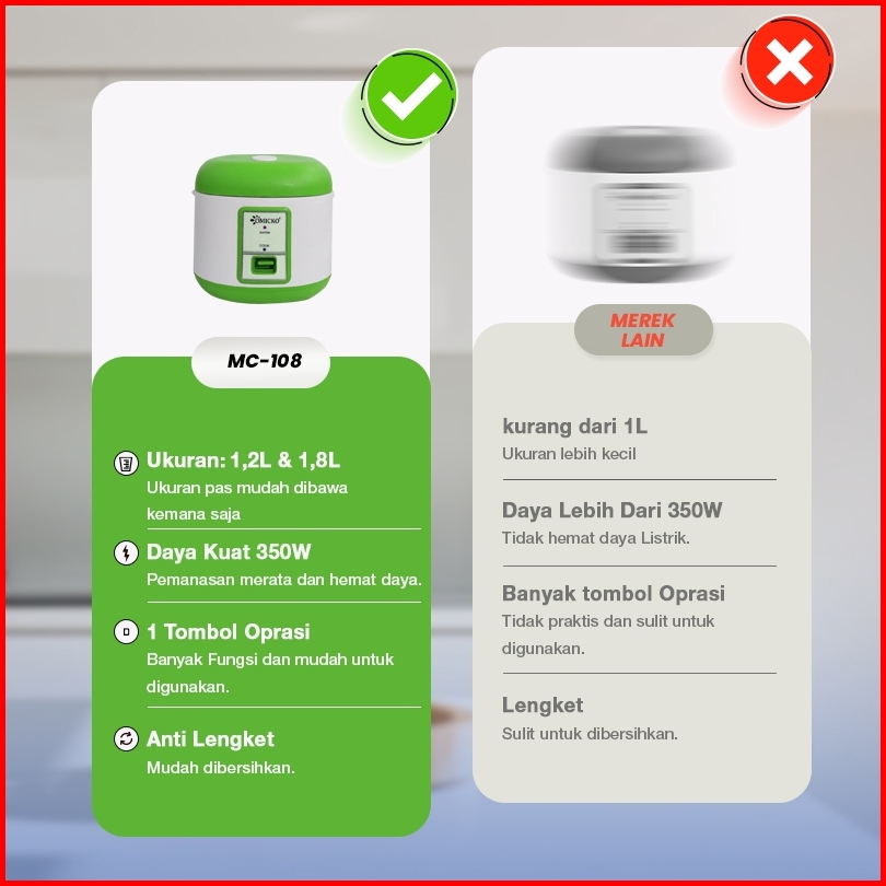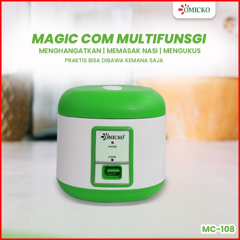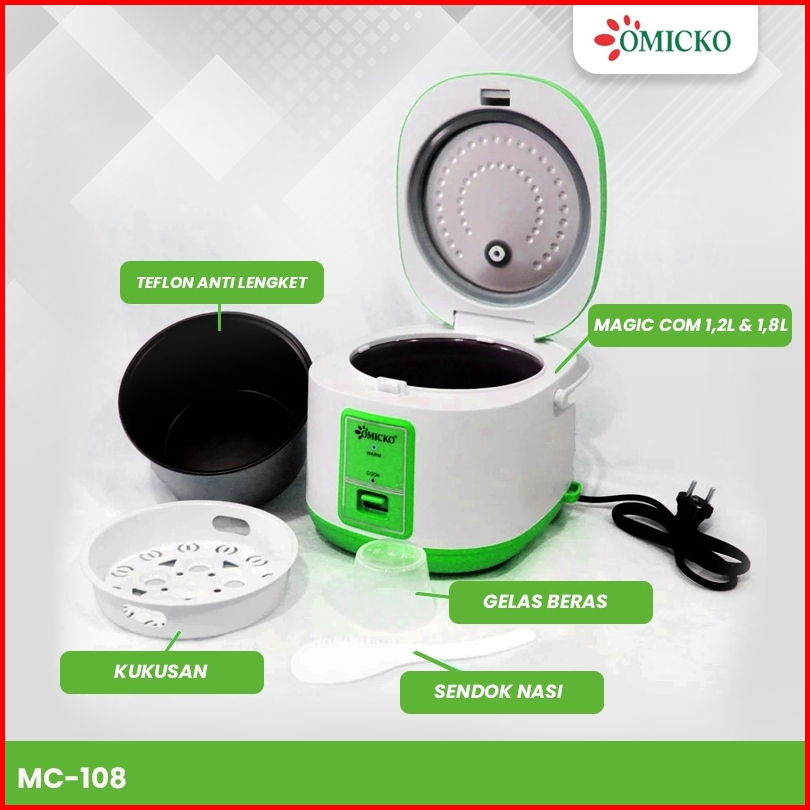Rice Cooker Hijau Omicko 1.2l 1.8l Kukusan Bonus Takaran Beras Hemat Listrik 350w Magic Com