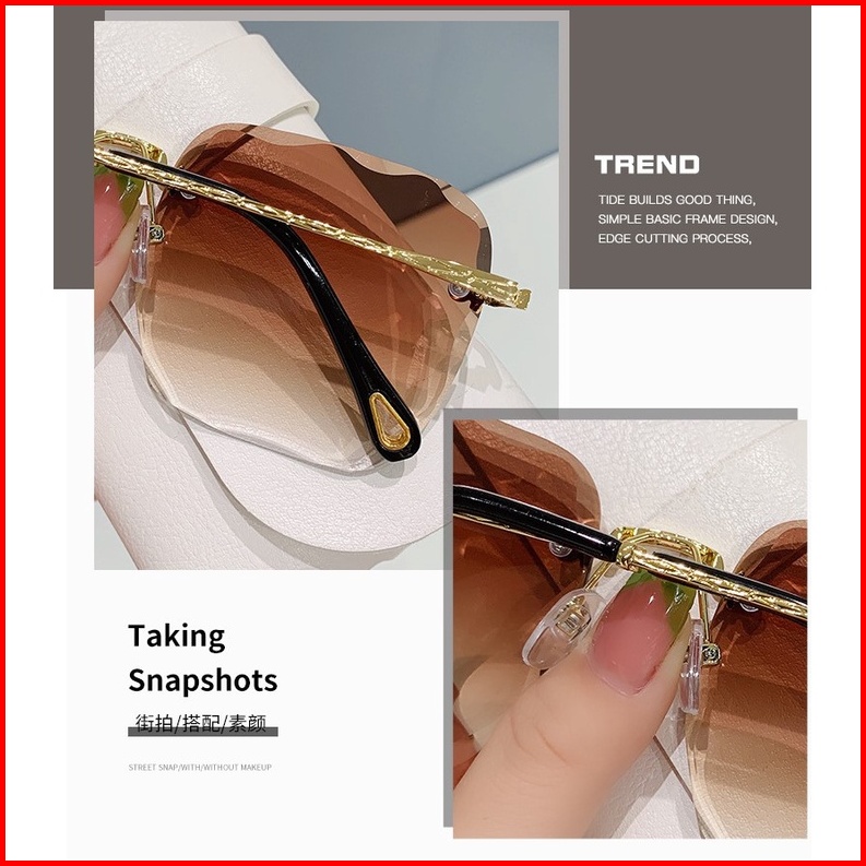 Km54 Kacamata Wanita Hitam Tanpa Bingkai Bentuk Kotak Gaya Retro Wanita Free Box