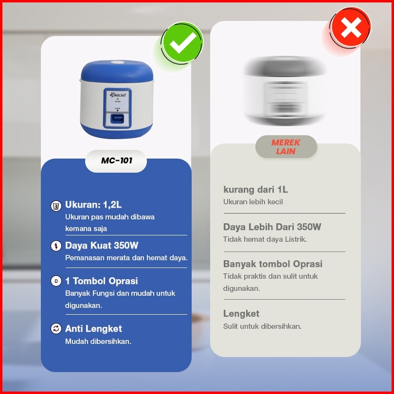 Omicko Rice Cooker Magic Com 1.8 Dan 1 Liter 3 In 1 Bonus Gelas Ukur Sendok Nasi