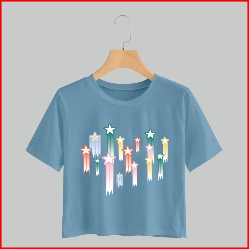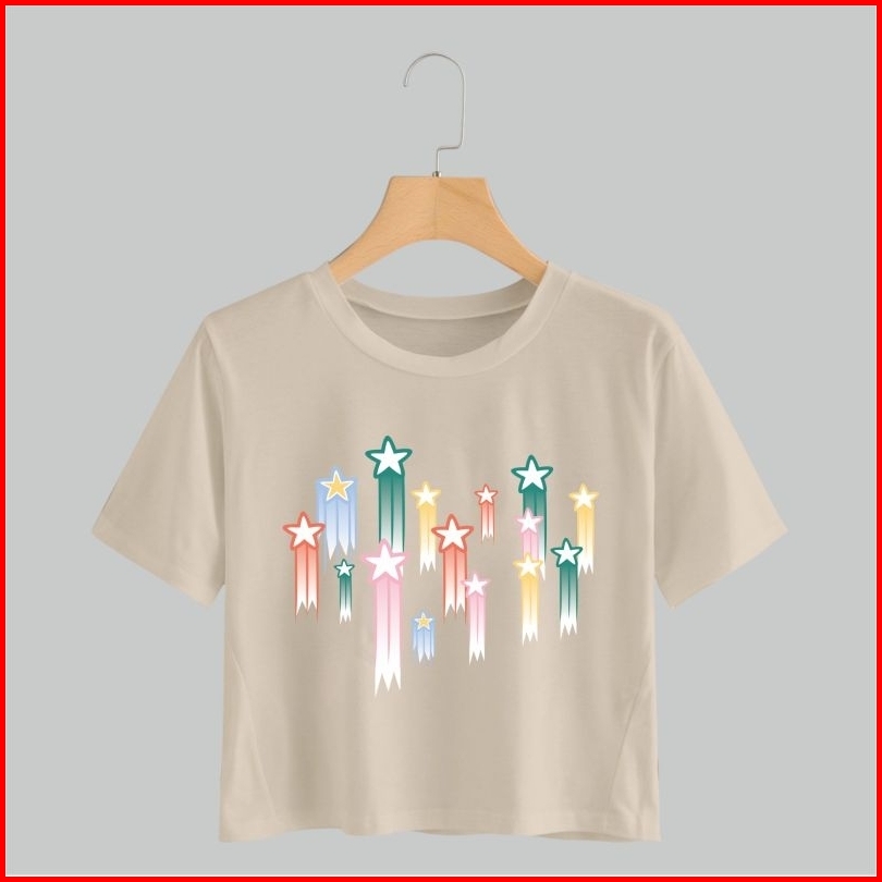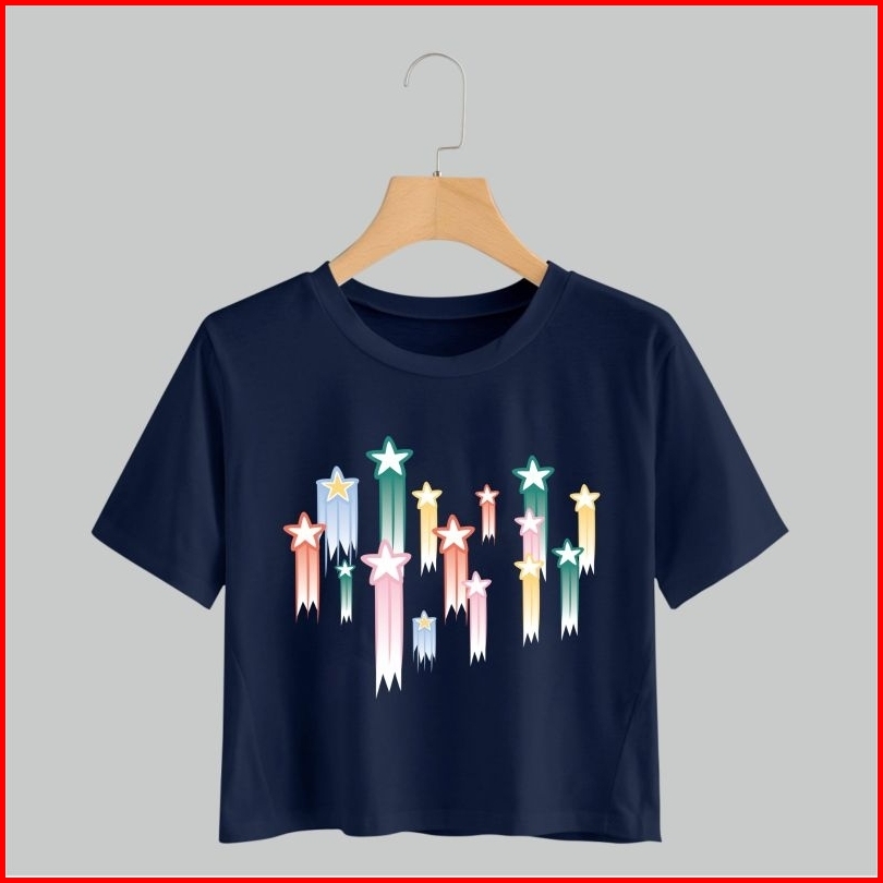 Kaos Crop Wanita Motif 123 Atasan Bahan Cotton Combed
