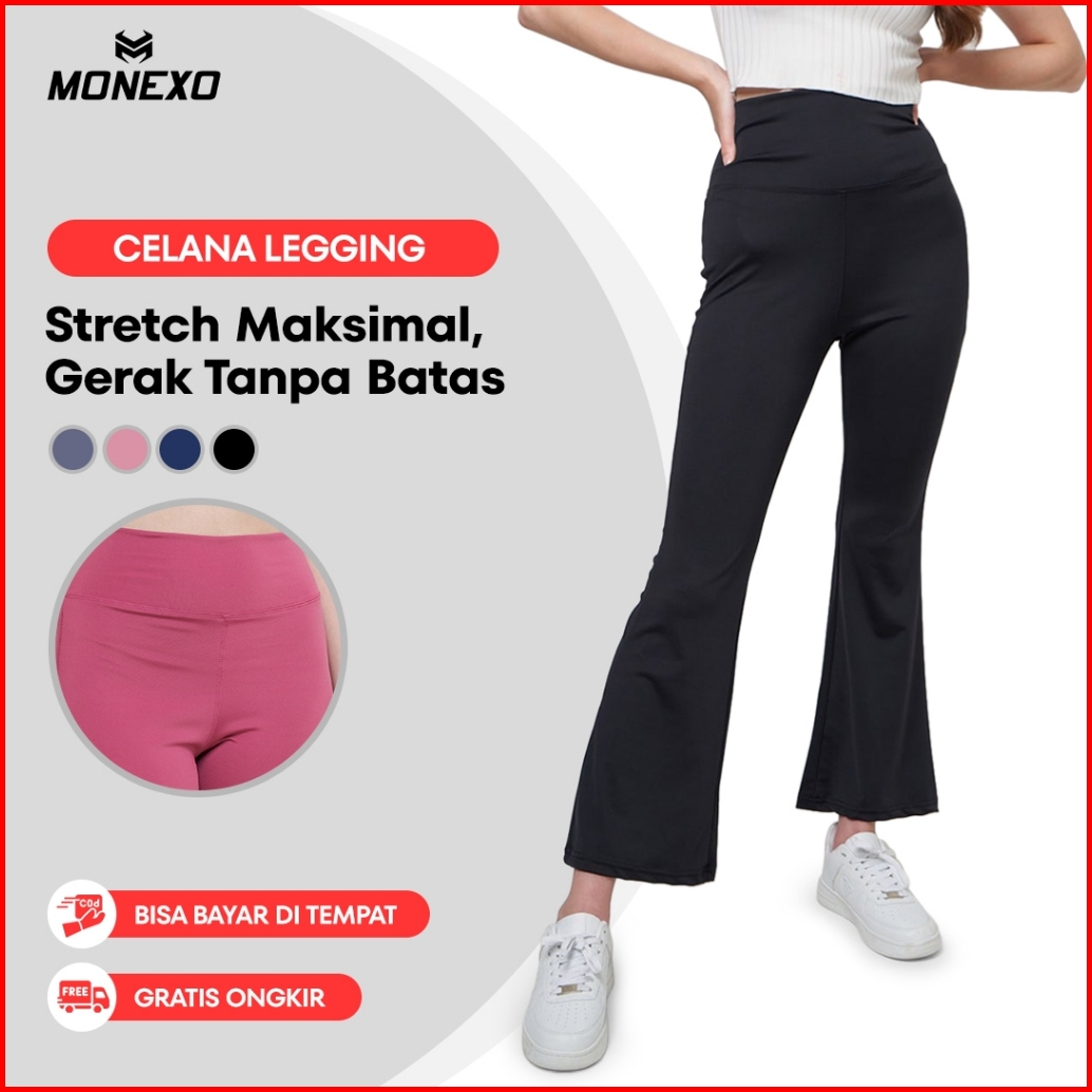 Monexo - Celana Legging Sport Cutbray Celana Yoga Wanita Legging Basic Wide Leg High Waist Yoga Pants Legging25