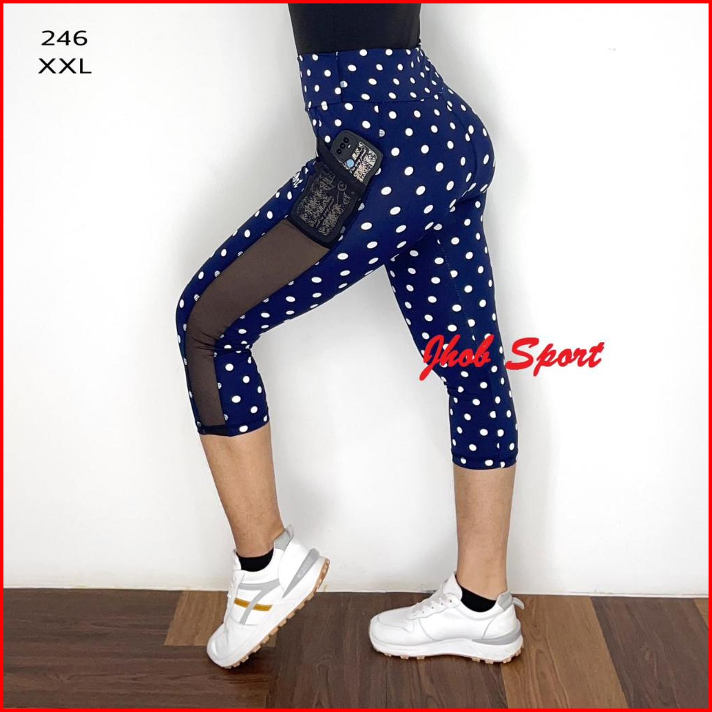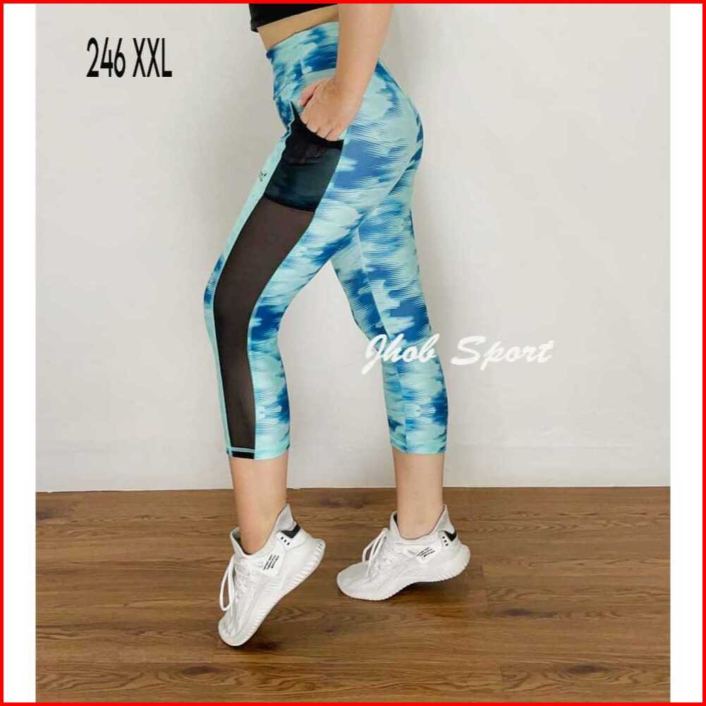 Mbs Celana Legging Jumbo Pendek 7 8 Kantong Jaring Olahraga Wanita Senam Zumba Yoga Gym Legging Olahraga Wanita