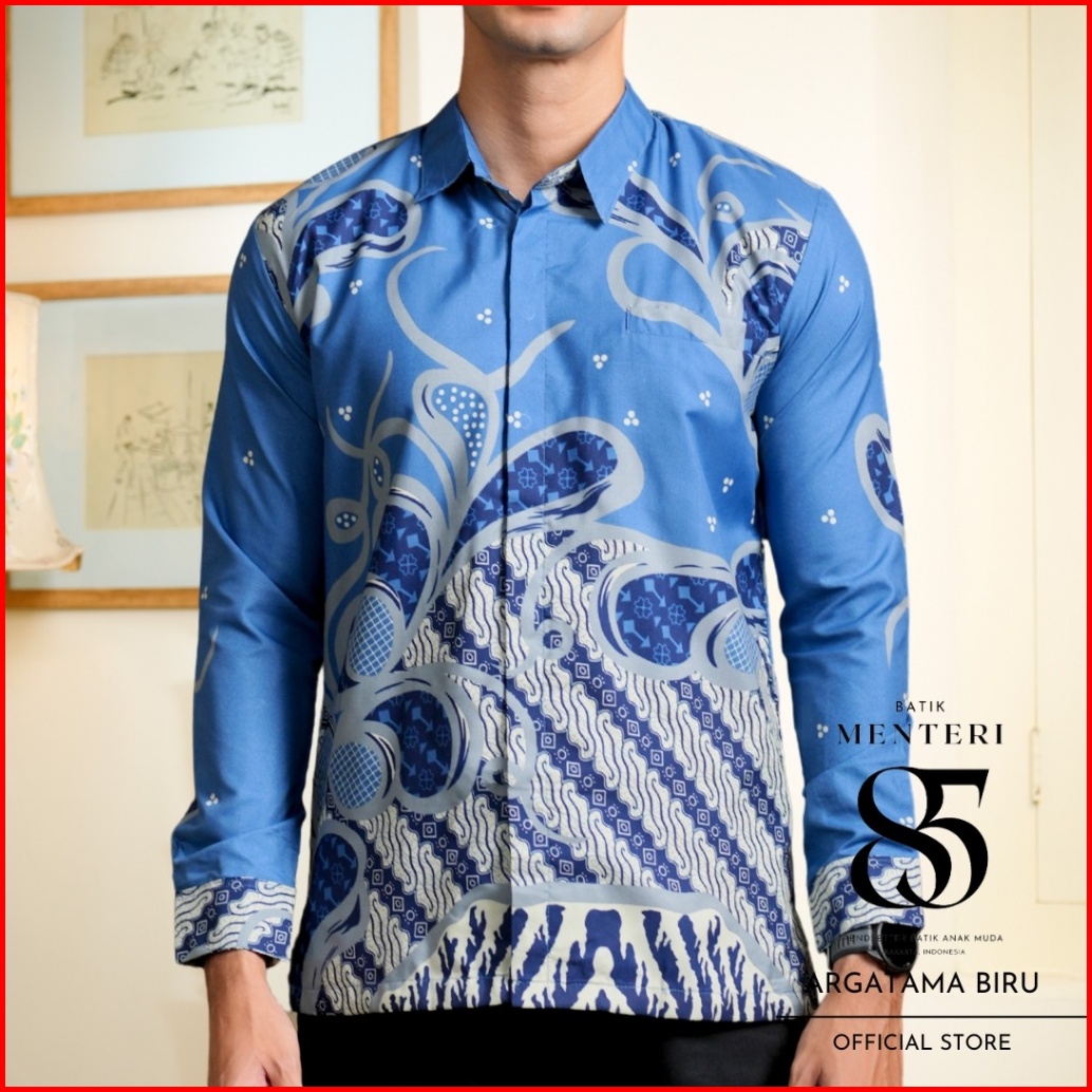 Batik Menteri 85 Motif Argatama Biru Batik Kerja Kondangan Kemeja Batik Slimfit Lapis Furing New
