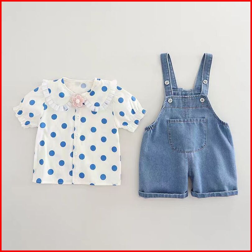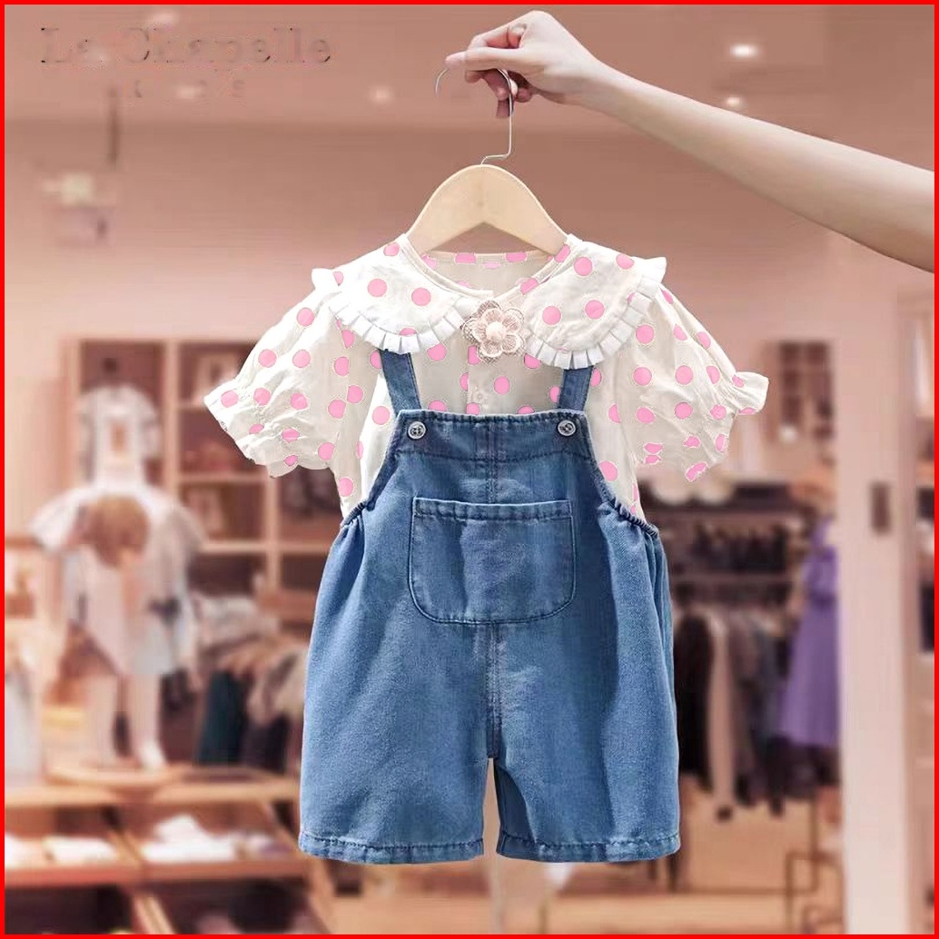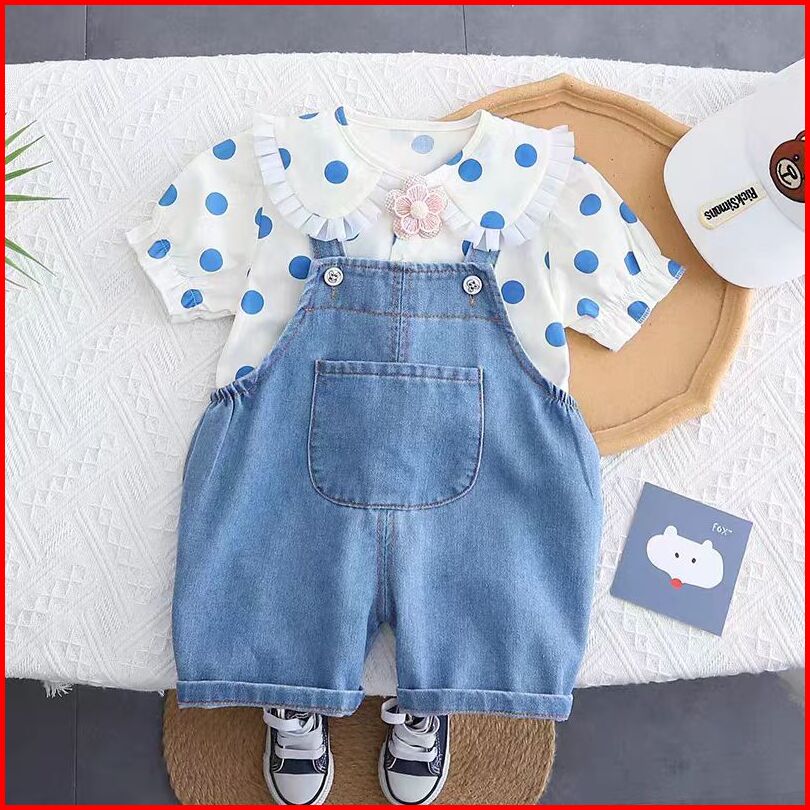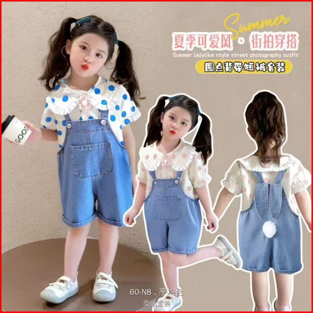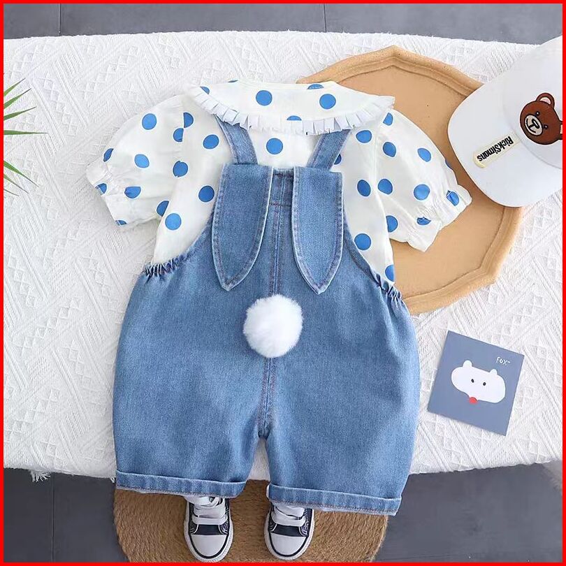 Setelan Overall Rabbit Gaya Korea Anak Perempuan 2in1 Baju Celana Jins 1-4 Thn