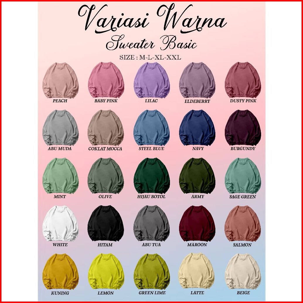 Bunz Basic Sweater Crewneck Long Sleeve Squeze Size M-xxl Pria Wanita