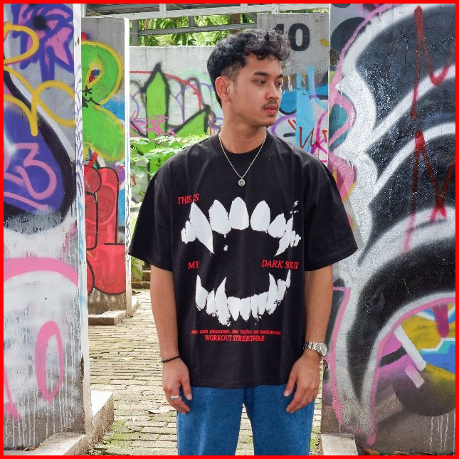 Workout Streetwear Kaos Baju Tshirt Boxy Oversize 20s Dark Soul