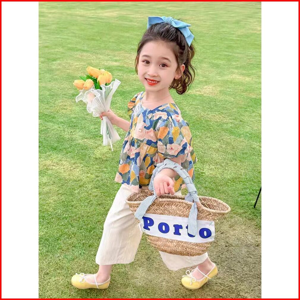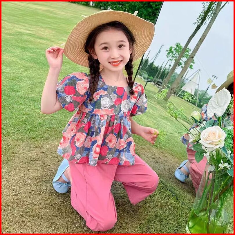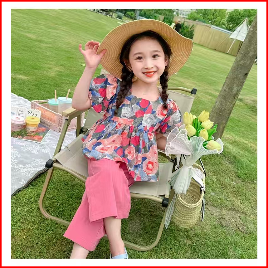 Set Anak Perempuan Kemeja Lengan Pendek Korea Style Celana Panjang Wide Leg Untuk Usia 1-5 Tahun