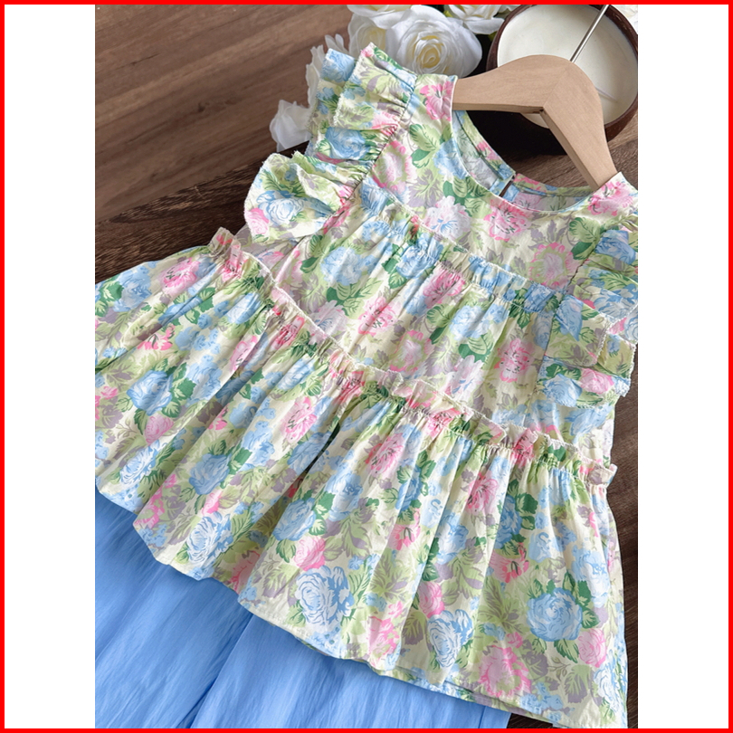 Baju Blouse Anak Perempuan Korea Lengan Pendek Bunga Usia 1-5thn Baju Setelan 2in 1 Anak
