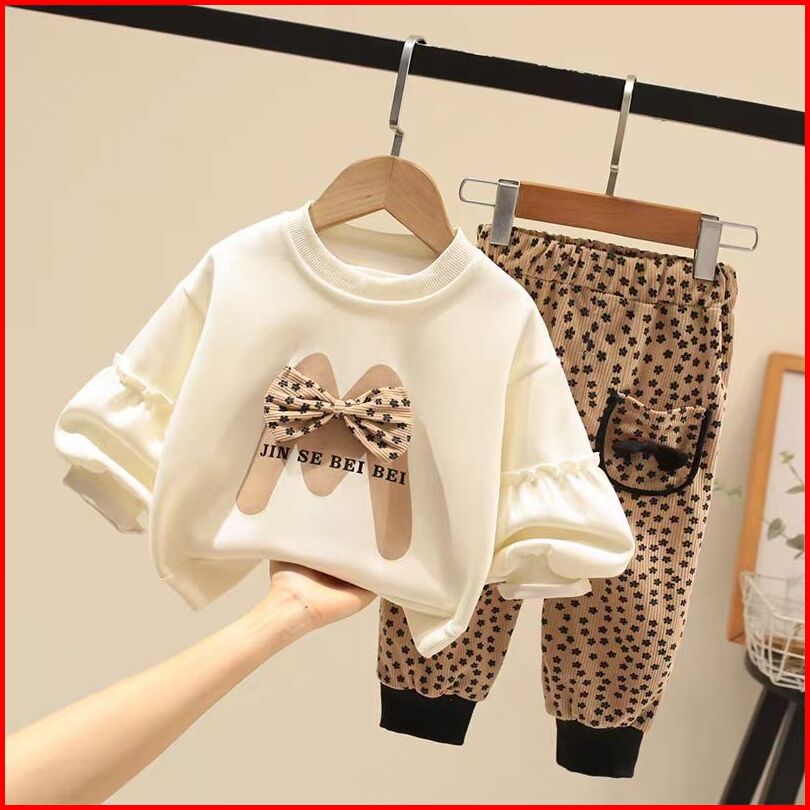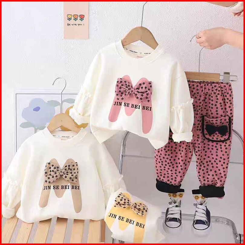 Baju Setelan Motify Pita Kupu-kupu Bermotif Titik Premium Anak Perempuan Usia 1-5thn One Set 2in 1