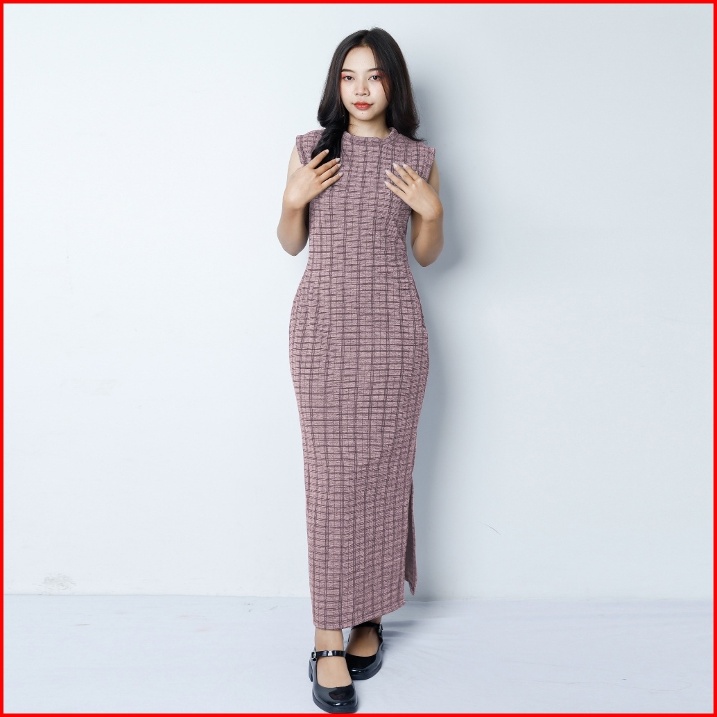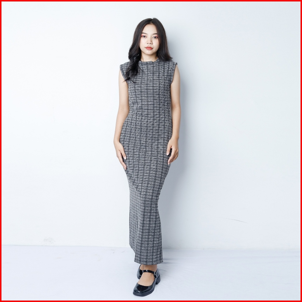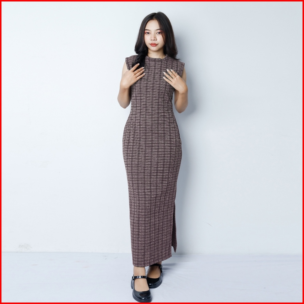 Dress Bodycone Slimfit Tartan Bahan Knit Slim Dress Bodycone By Knara