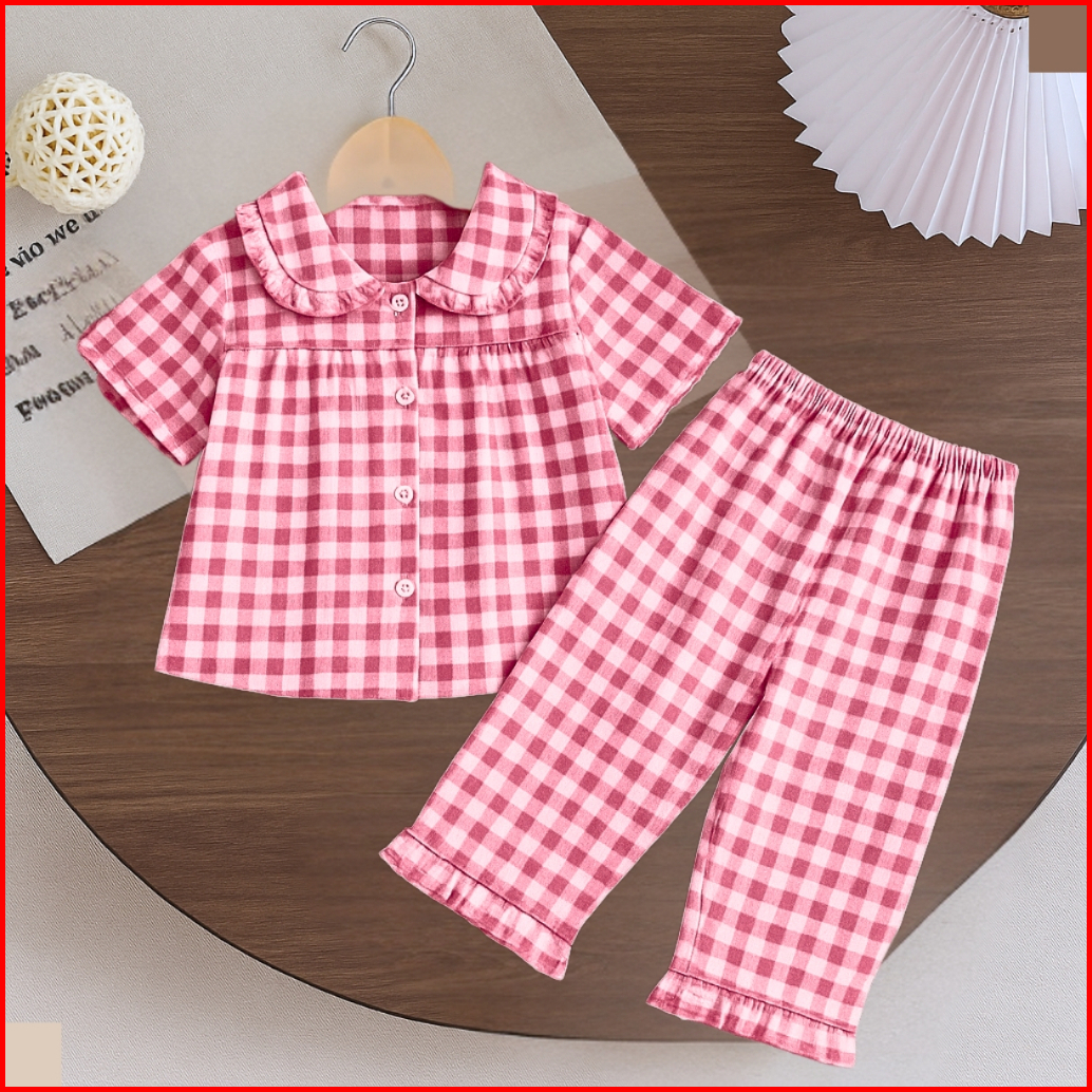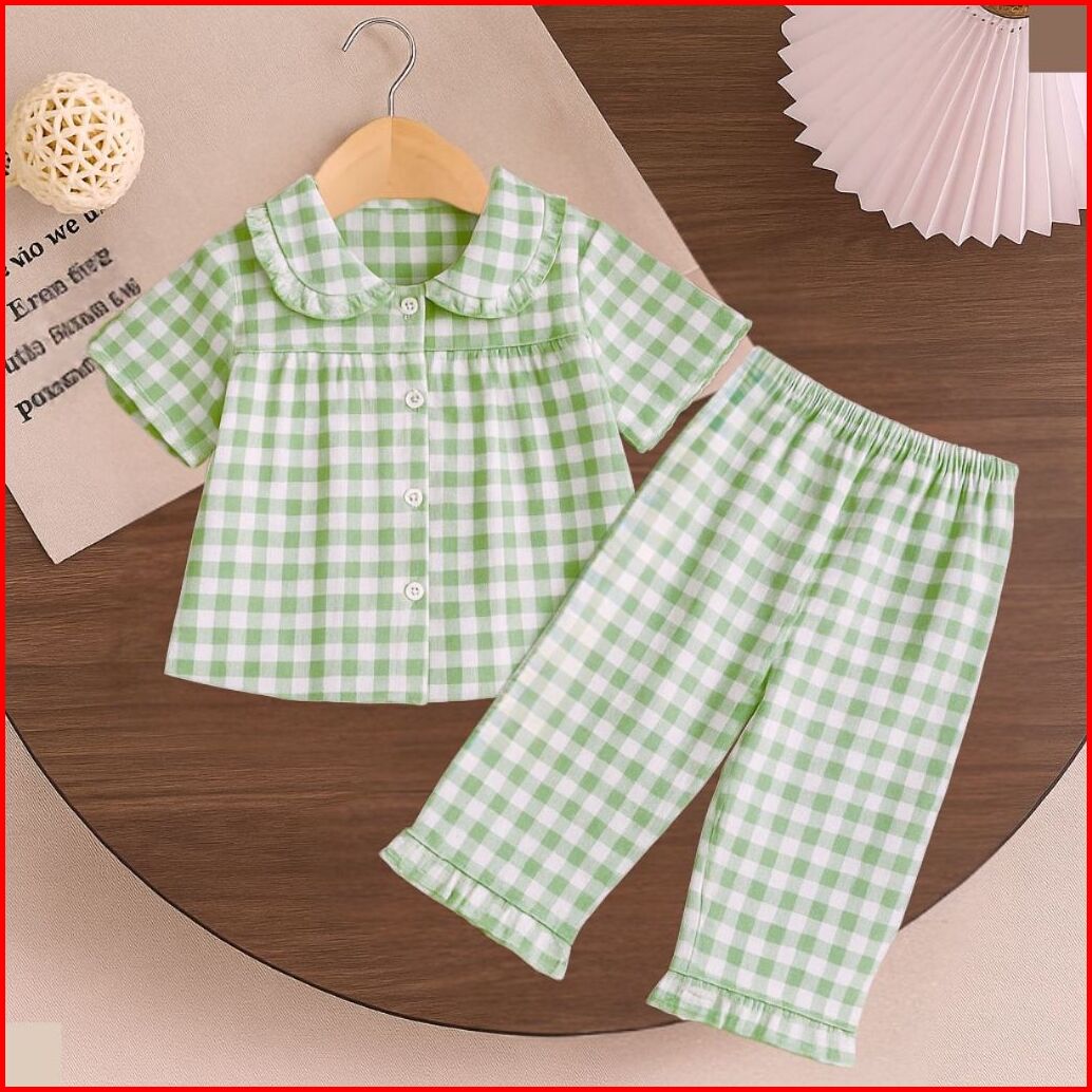 Nugraha.fashion - Setelan Anak Perempuan Motif Kotak Lengan Pendek Baju Tidur Santai Lucu Adem Usia 17 Tahun
