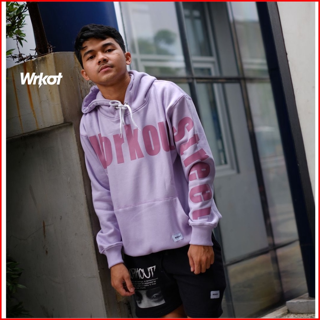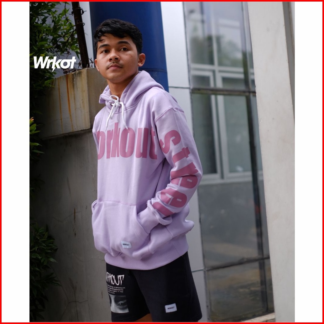 Workout Streetwear Sweater Hoodie Original Workout Purple Writing Pakaian Pria