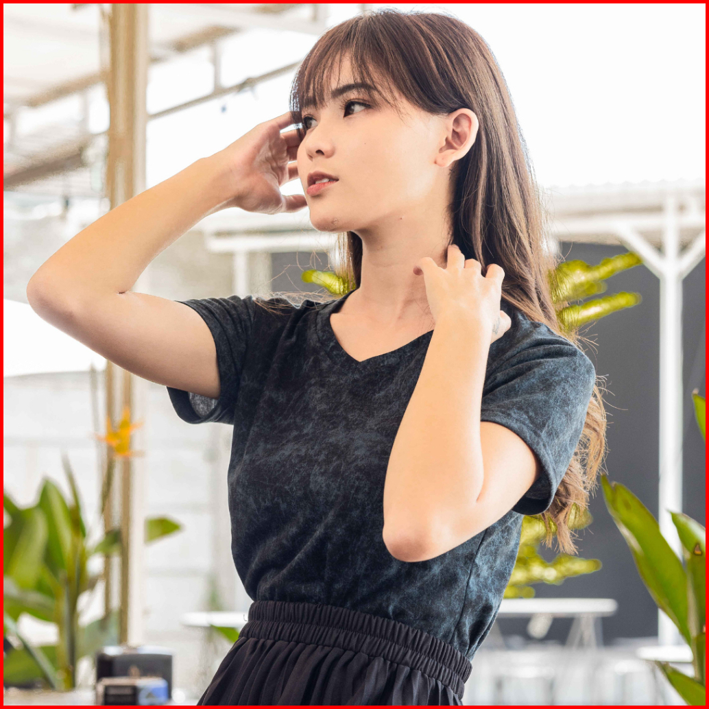 Sf V Neck Sandwash Wanita Kaos Katun Kaos Motif Katun Premium South Formed