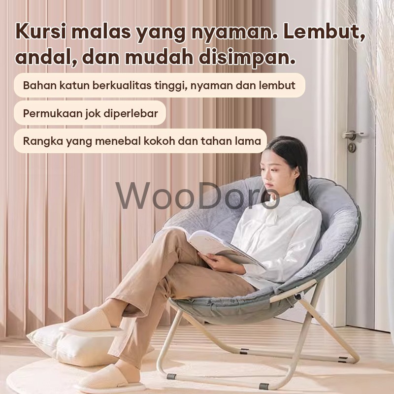 TABLETROVE Kursi Lipat Bulat Kursi Papasan Kursi Malas Moon Chair Bangku Lipat Kursi Lipat Portable