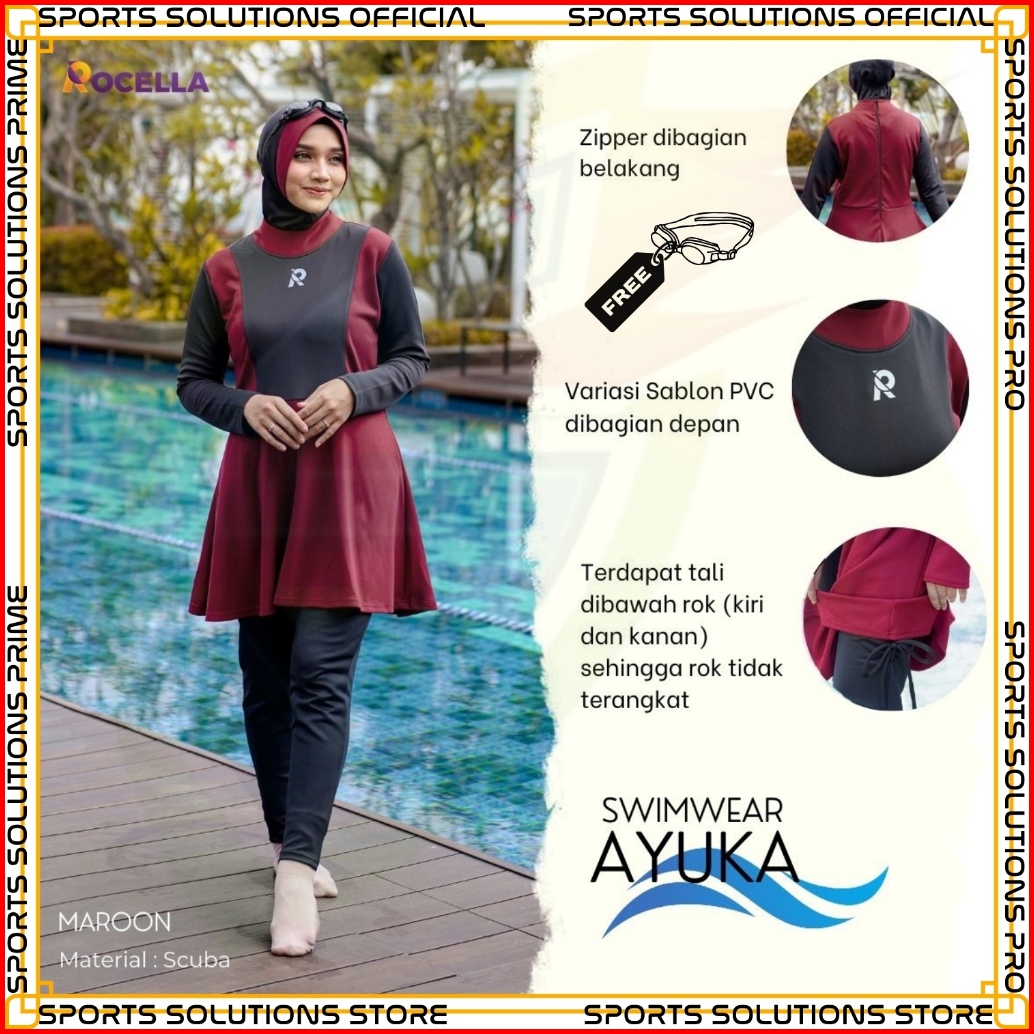 Baju Renang Muslimah - Baju Renang Wanita Muslim - Baju Renang Muslimah Hijab - Baju Renang Dewasa Muslimah Rocella Swim