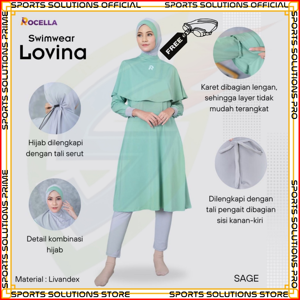 Baju Renang Muslimah - Baju Renang Wanita Muslim - Baju Renang Muslimah Hijab - Baju Renang Dewasa Muslimah Swimwear Roc