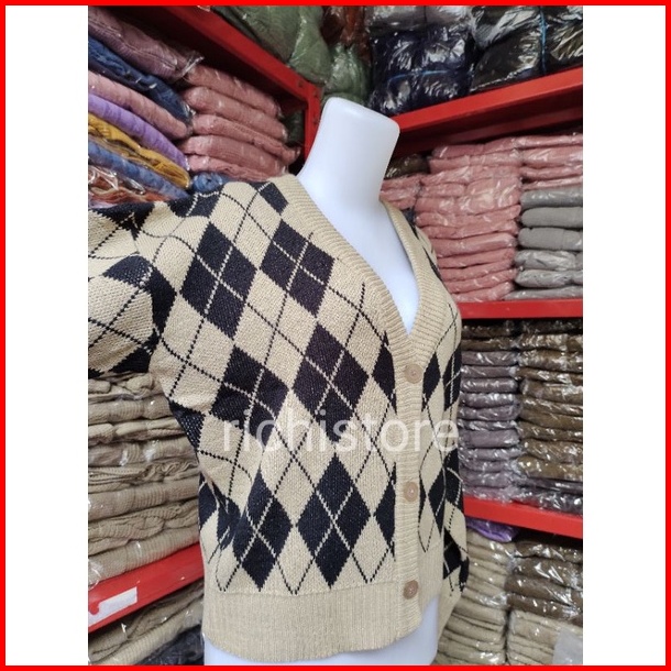 Kardigan Kartu Kotak Rajut Premium Kwlitas Eksport Rajut Wanita