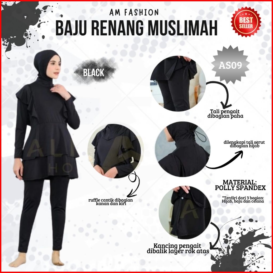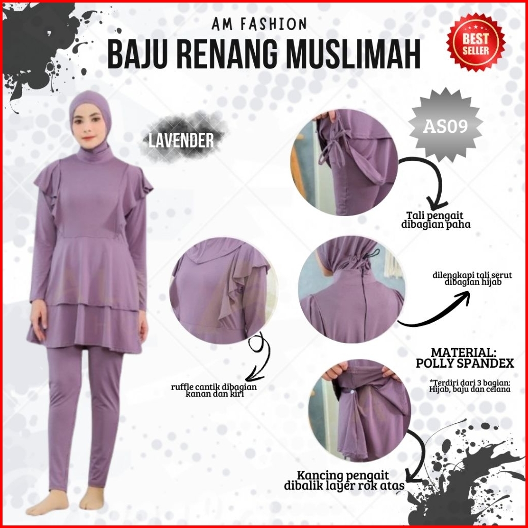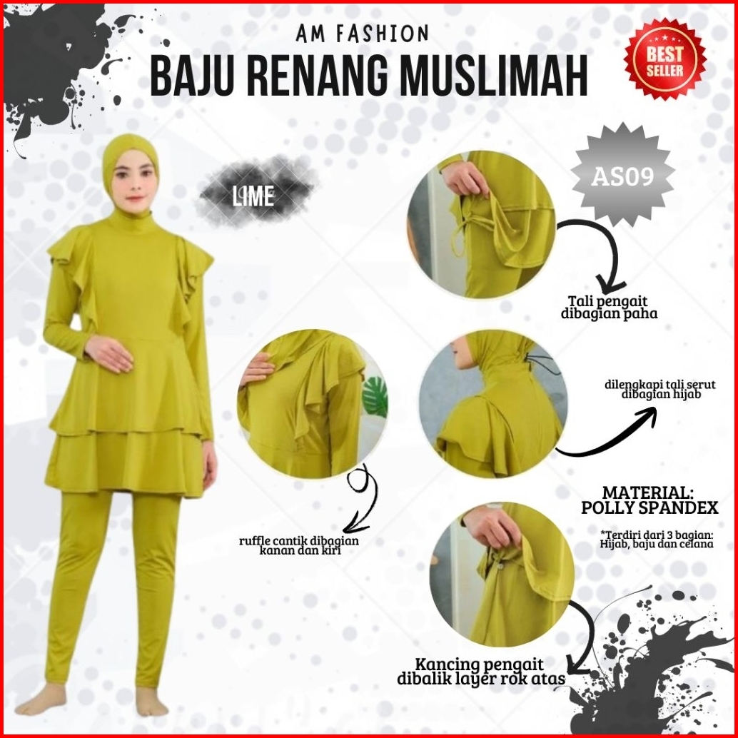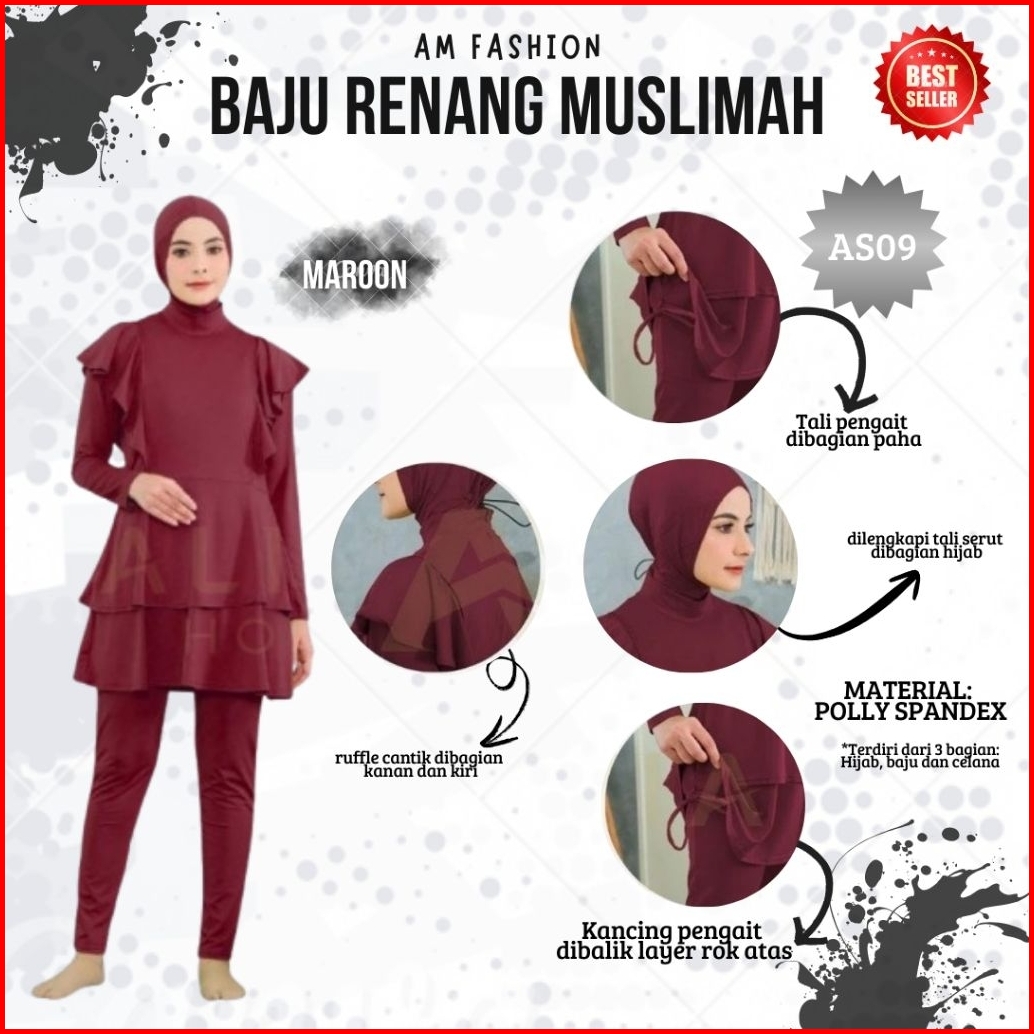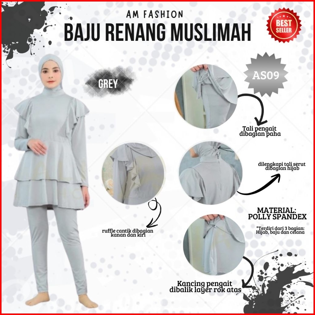 As09 - Baju Renang Muslimah Syari Dewasa Wanita Muslim Perempuan Remaja Swimwear Hijab