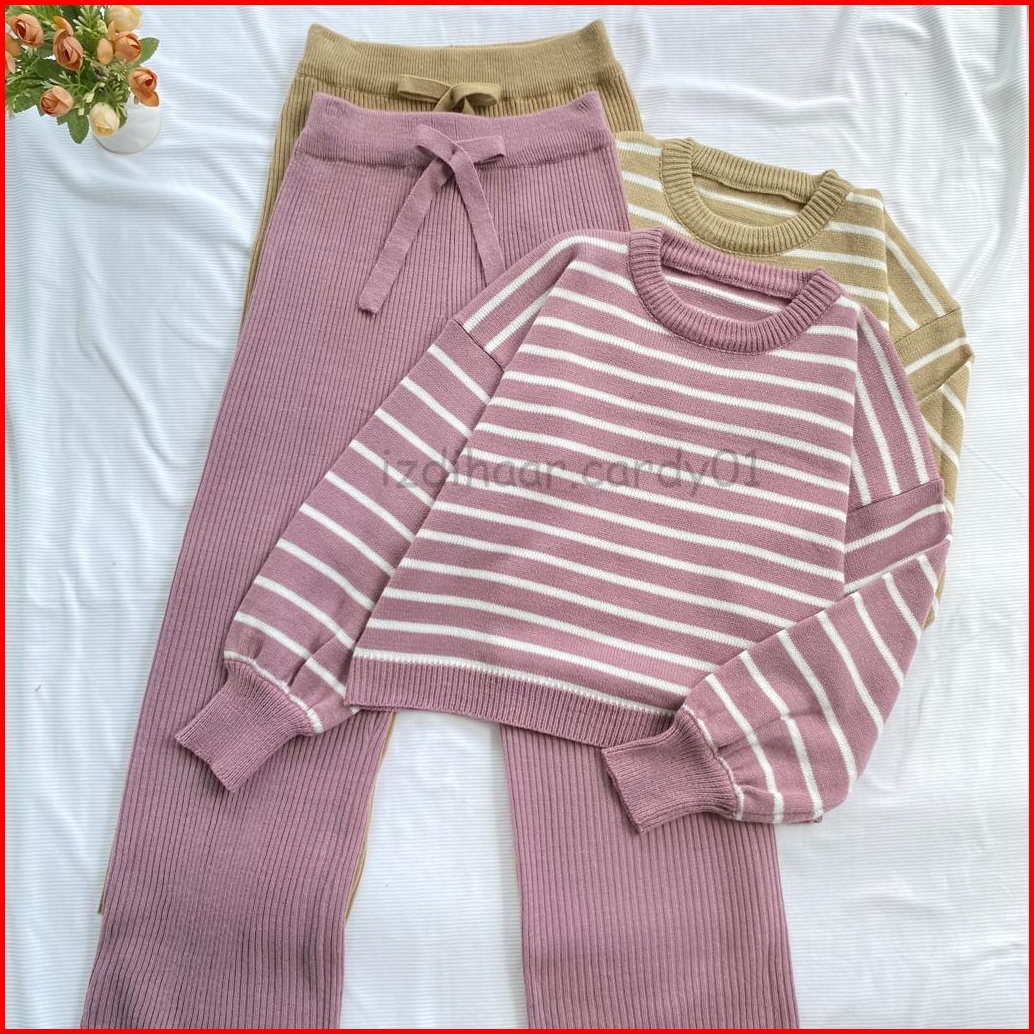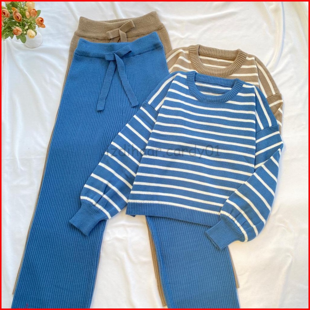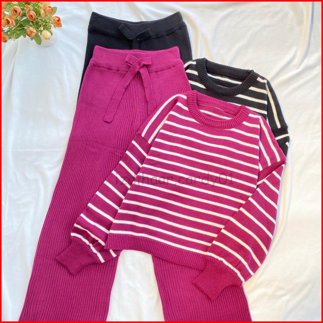 One Set Rajut Kulot Gia Terbaru Garis-garis