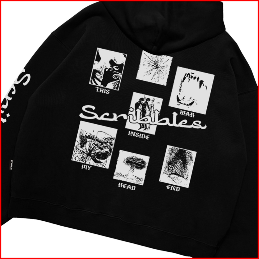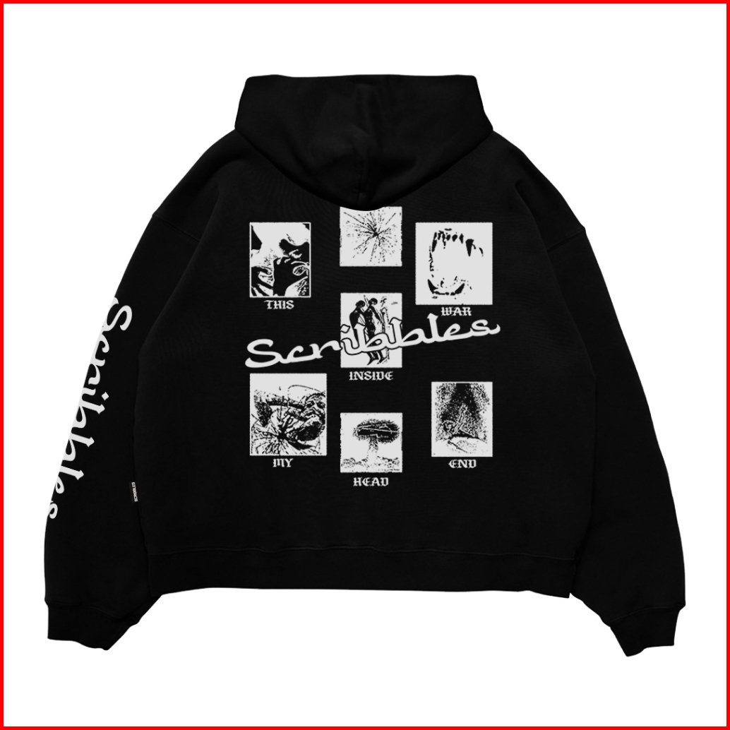 Workoutxscribbles Sweater Hoodie Boxy 330gsm Inside Original Hitam