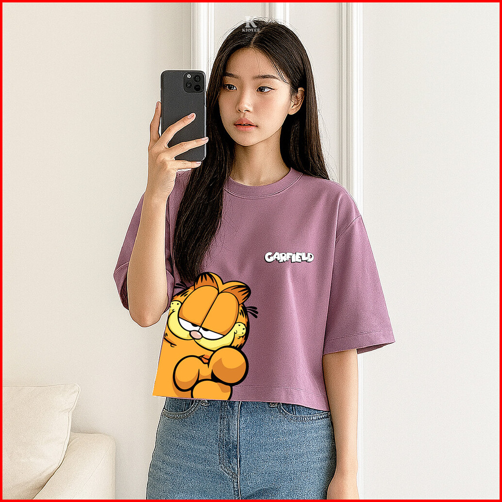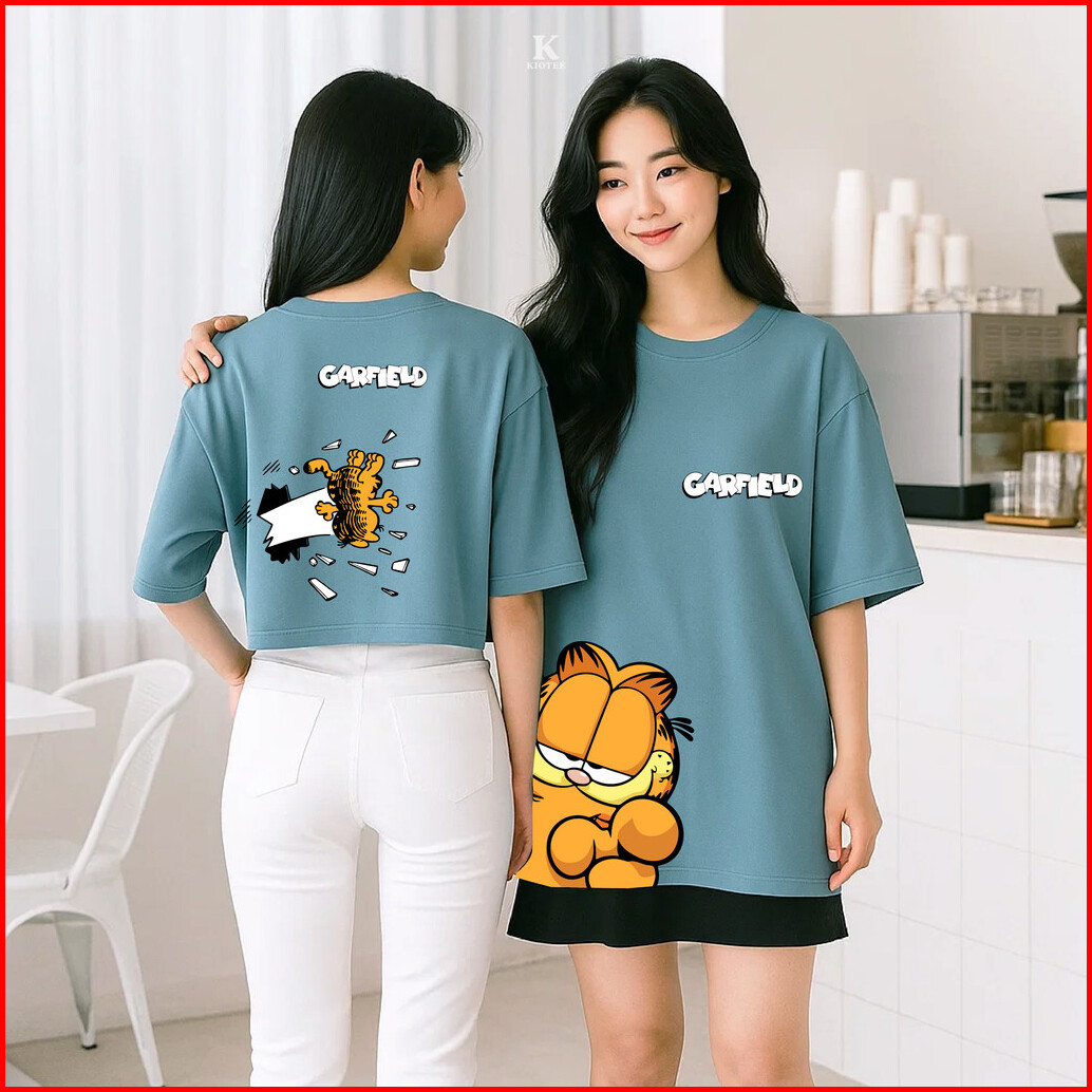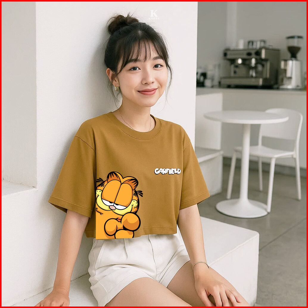 Kioteeshop Baju Kaos Oversize Atasan Kaos Crop Top Oversize Lengan Pendek Motif Garfielddb