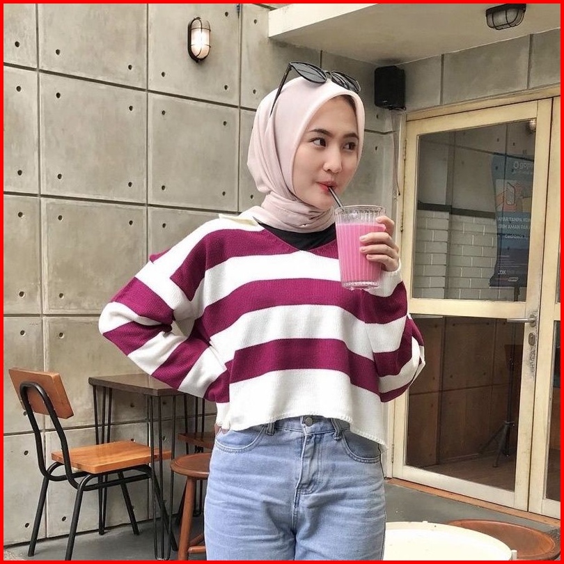 Crop Rajut Nadira Over Size Blouse Premium Atasan Wanita