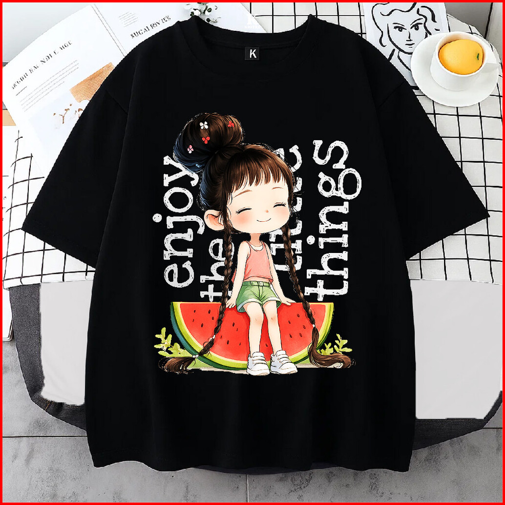 Kioteeshop Kaos Lengan Pendek Baju Crop Top Bahan Katun Oversize Motif Cewek Semangka