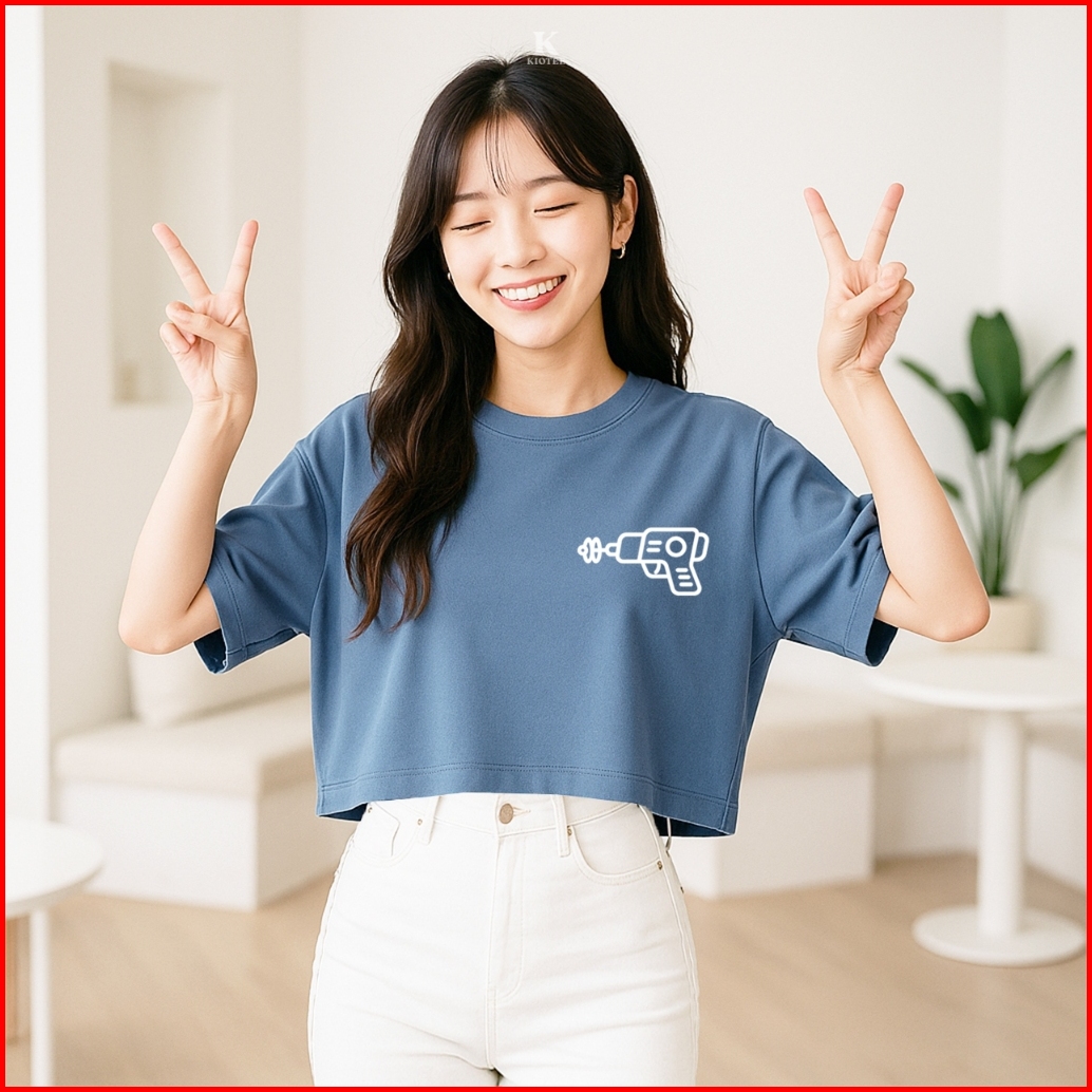 Kioteeshop Baju Crop Top Oversize Crop Bahan Kaos Motif Rocket
