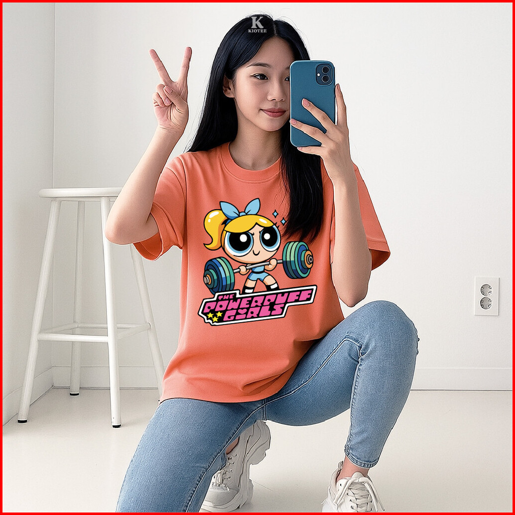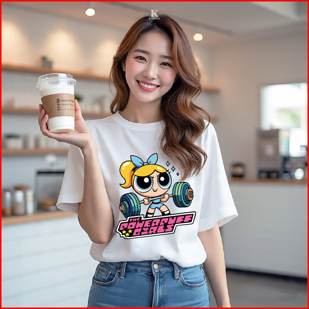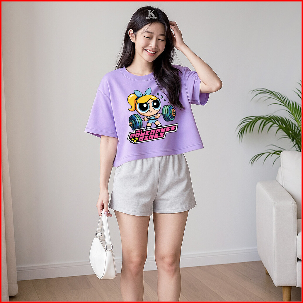 Kioteeshop Baju Kaos Crop Top Bahan Katun Lengan Pendek Motif Powerpuff Olahraga