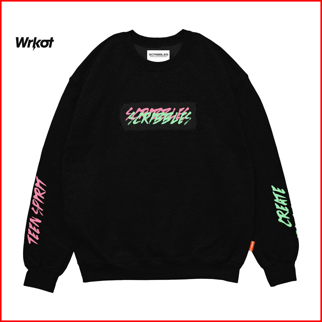 Workout Streetwear X Scribbles Sweater Crewneck Pria Nevermind Black Up To Big Size Best Seller