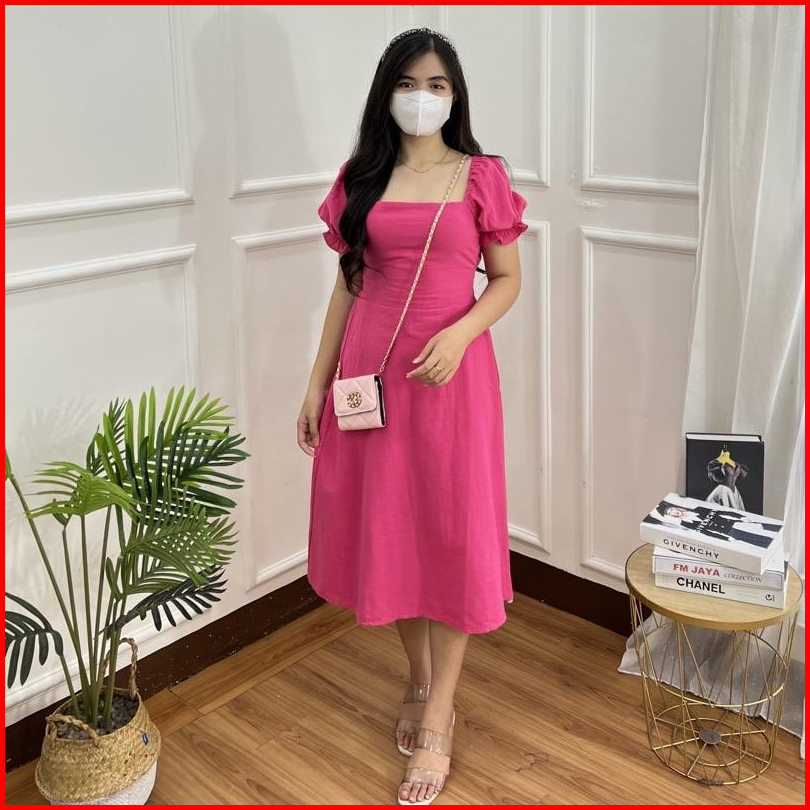Toply Shop Dres Korean Style Dres Viona Smock Dres Wanita Bahan Cey Krinkle