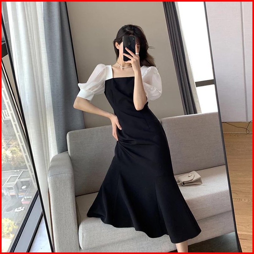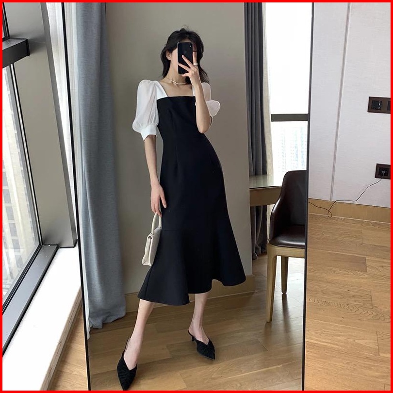 Toply Shop Dres Wanita Elegant Korean Dres Kombinasi