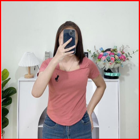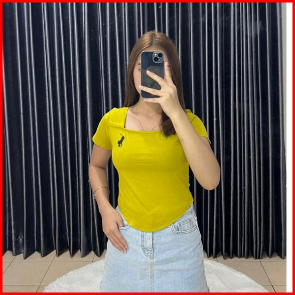 Square Neck Crop Top Bordir Lengan Pendek - Atasan Kaos Slim Fit Wanita Kasual Size M-xl - 6076
