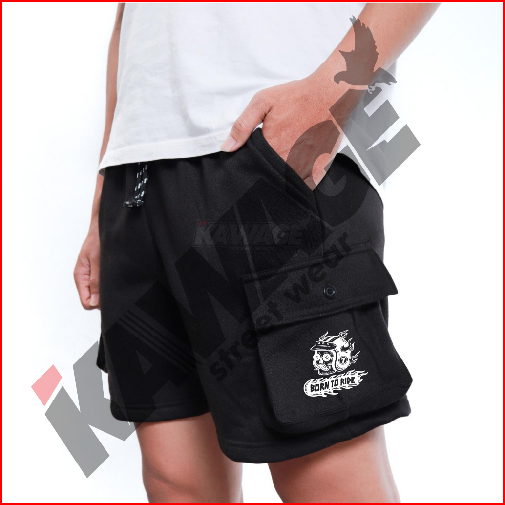Kawage Celana Cargo Pendek California Shortpant Cargo Fleece Sablon Plastisol