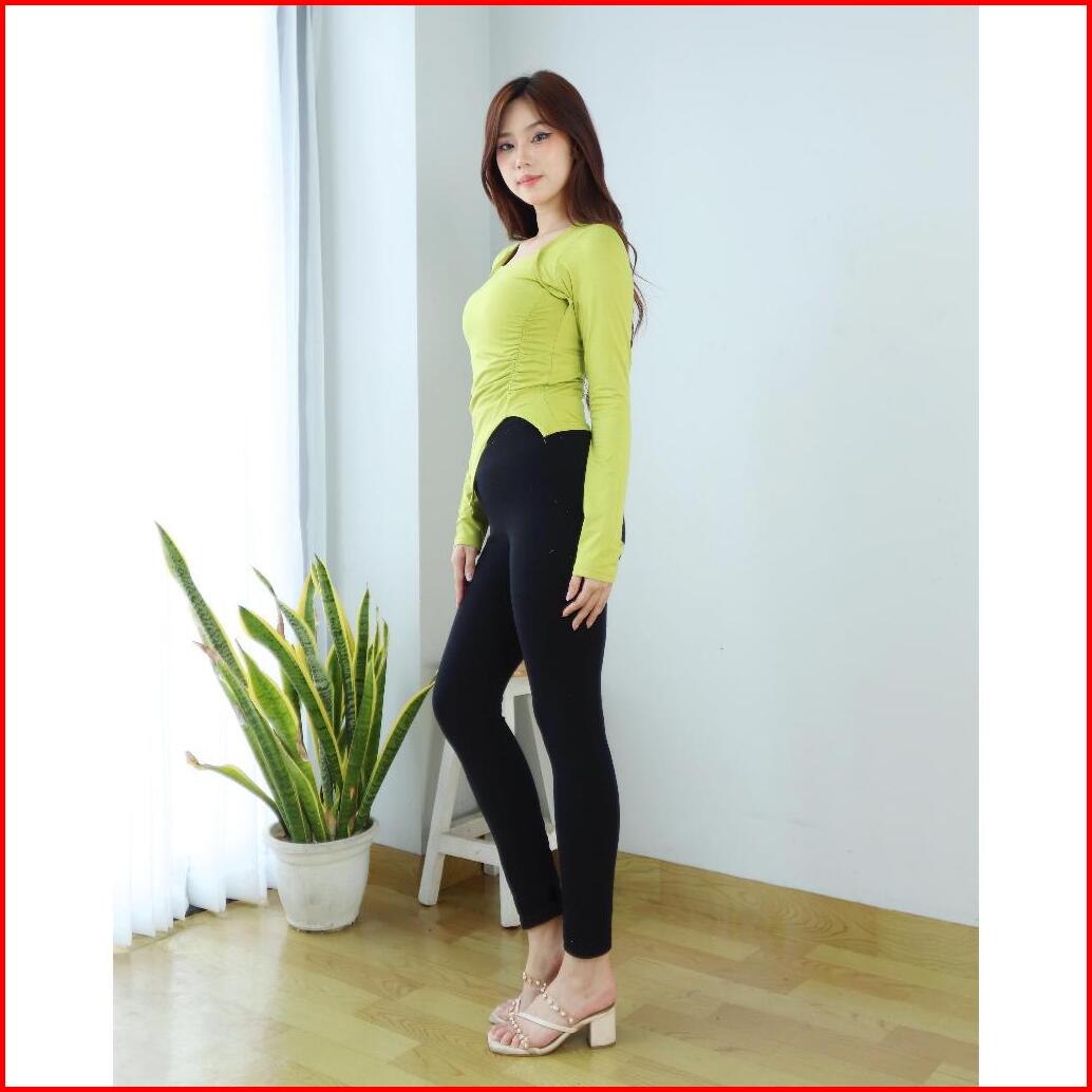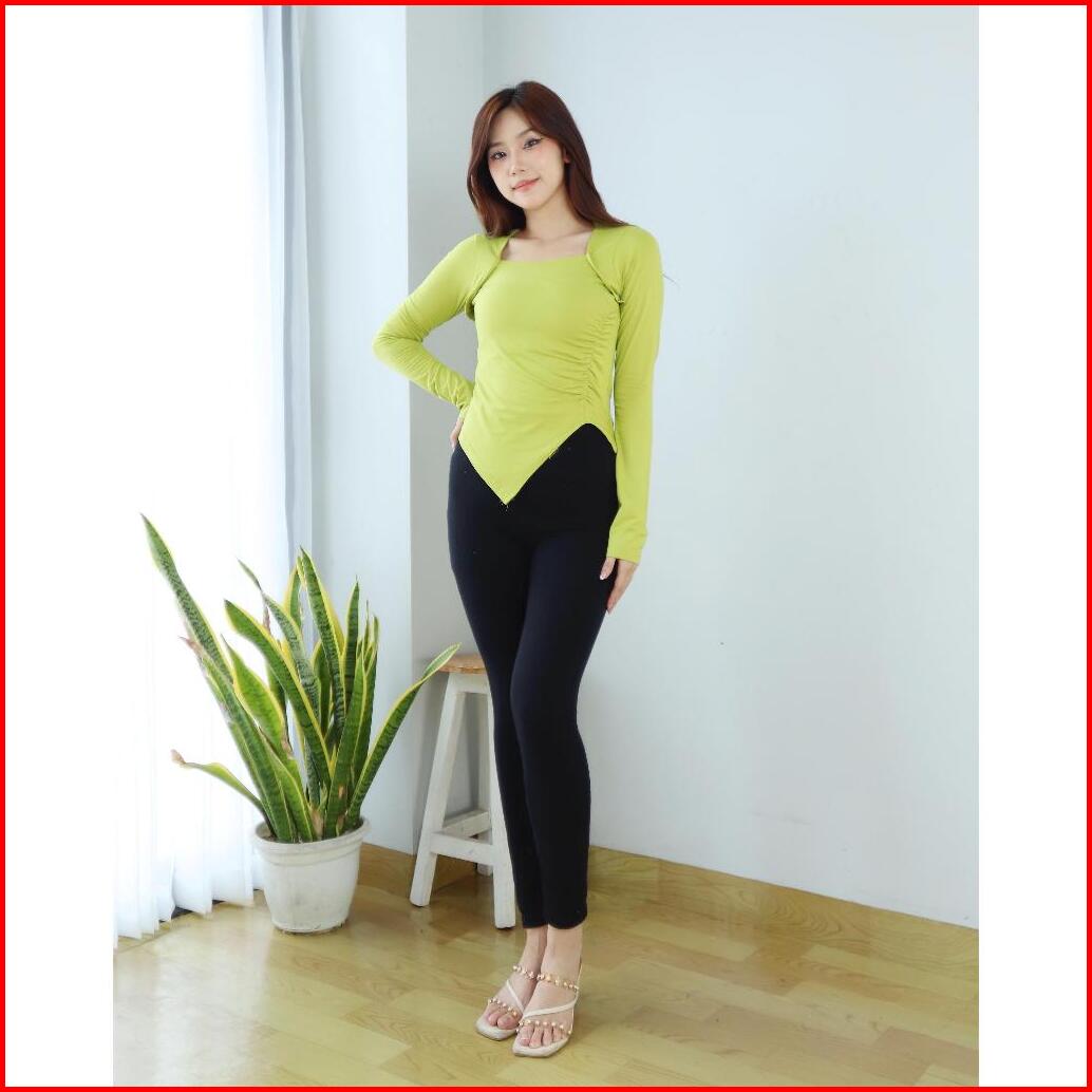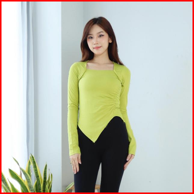 Crop Top Lengan Panjang Square Neck - Crop Top Korean Style Kerut Irregular 6053
