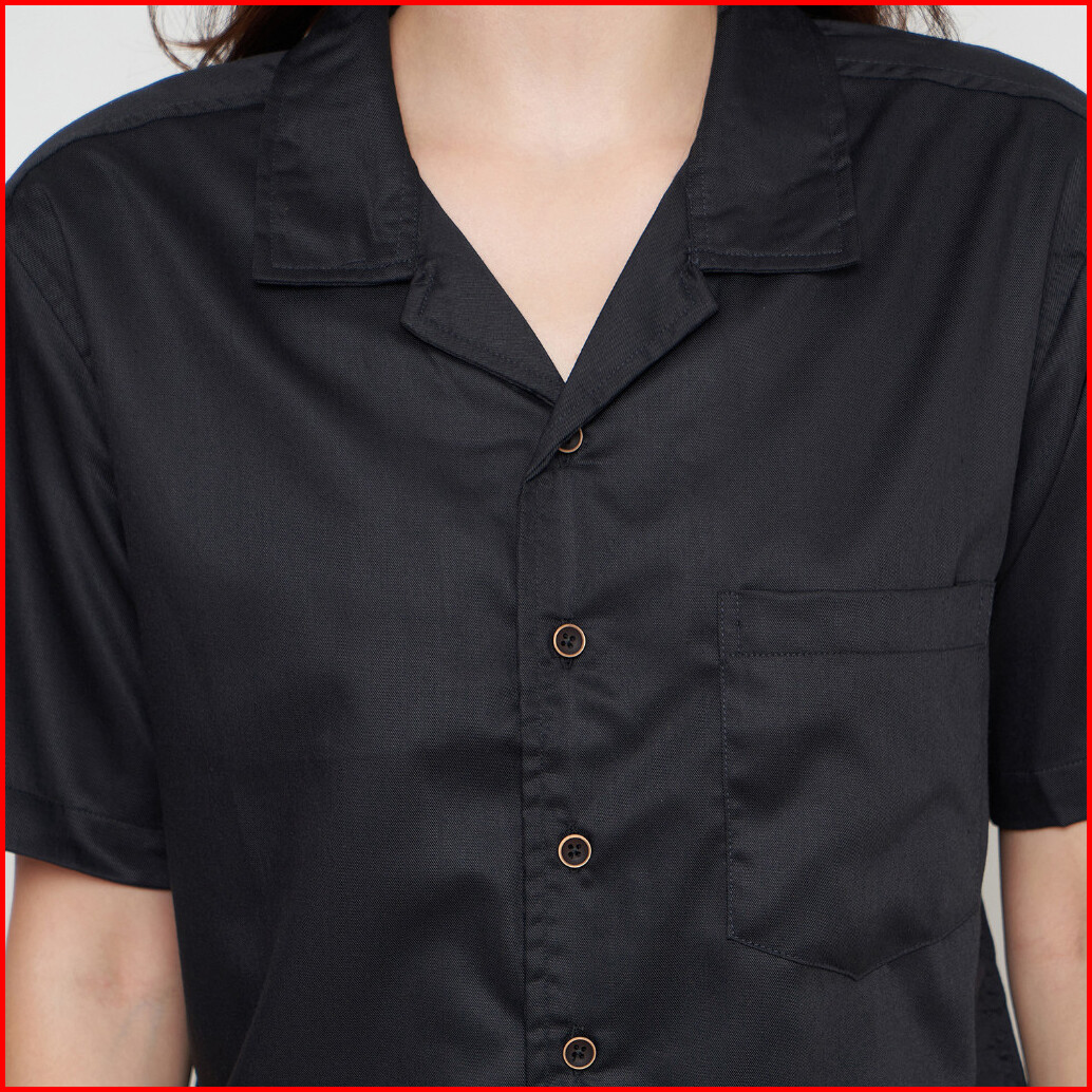 Kemeja Wanita Basic Hawaii Lengan Pendek Hitam Olr094