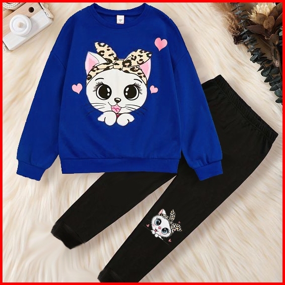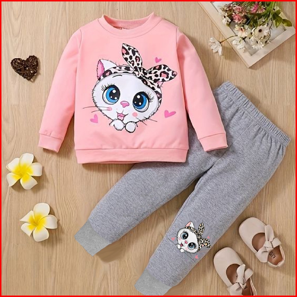 Baju Setelan Anak Perempuan Motif Kitten Usia 1 - 6 Tahun