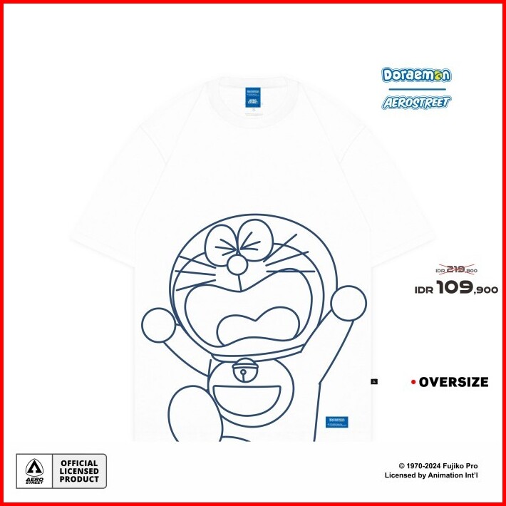 Aerostreet T Shirt Oversize Monoline Doraemon Off White Kaos Fbdaa