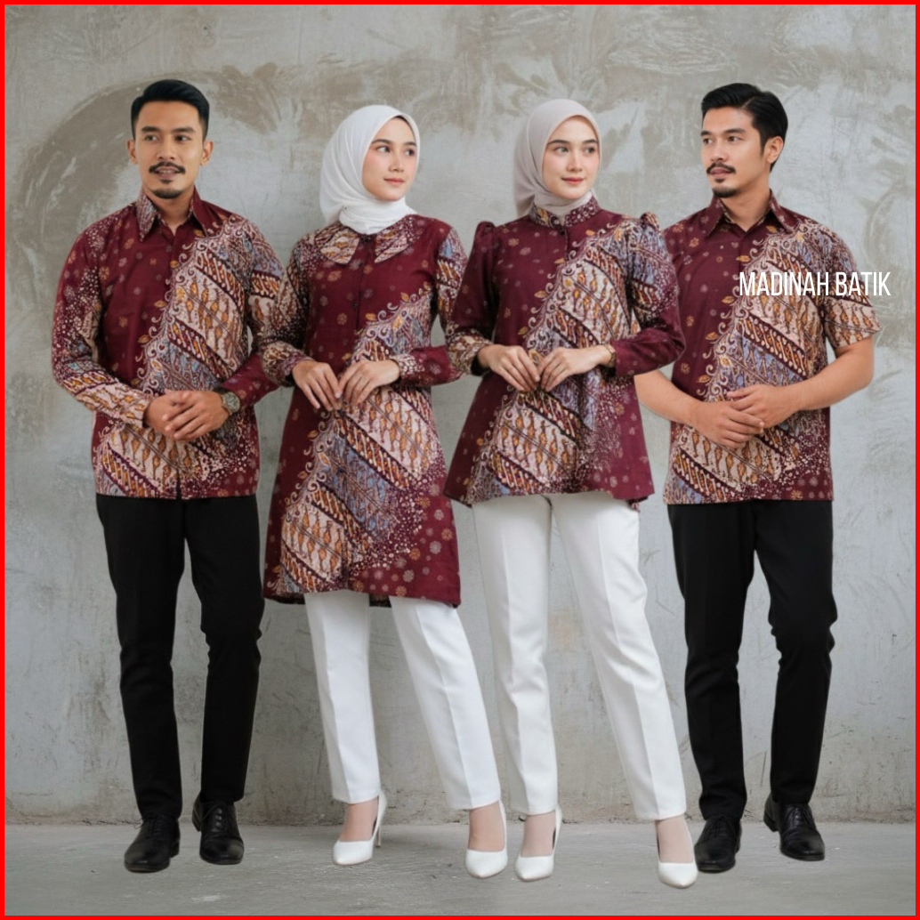 Batik Couple Wanita Modern Busui Kancing Depan Set Pakaian Couple Kemeja Batik Pria Pendek Atasan Batik Couple Te