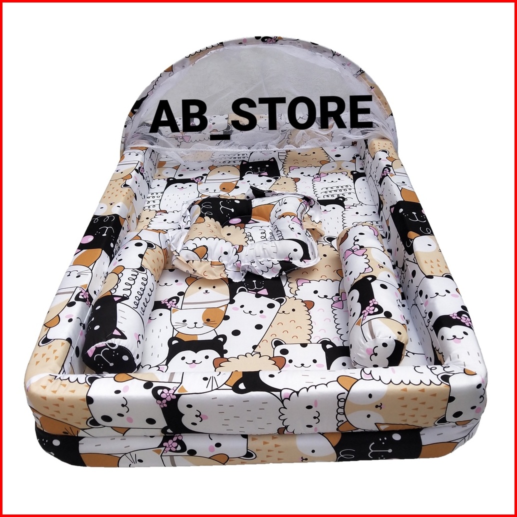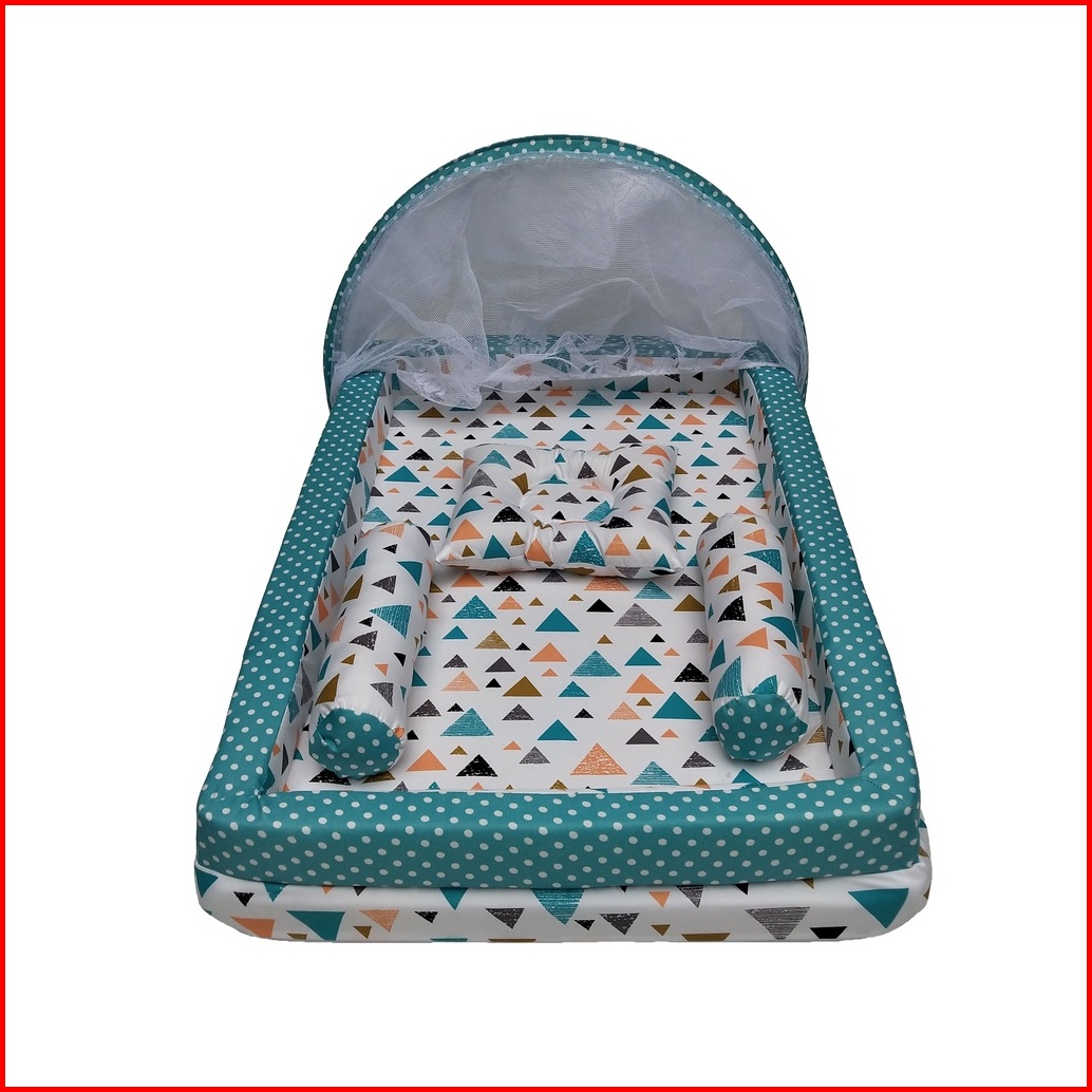 Harga Promo Kasur Bayi Kelambu Bisa Di Lepas Model Kolam Motif Segitiga Putih