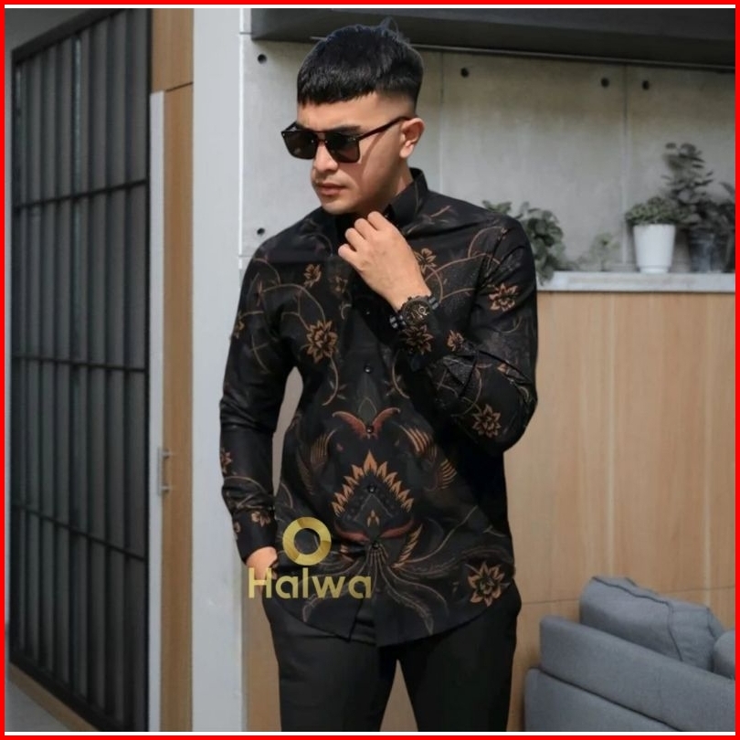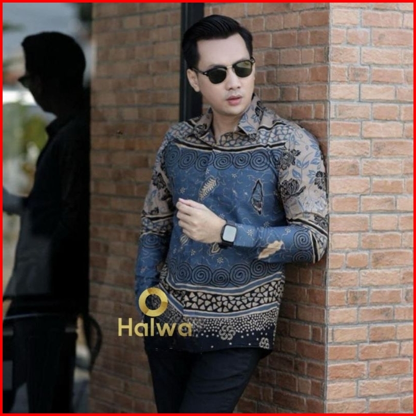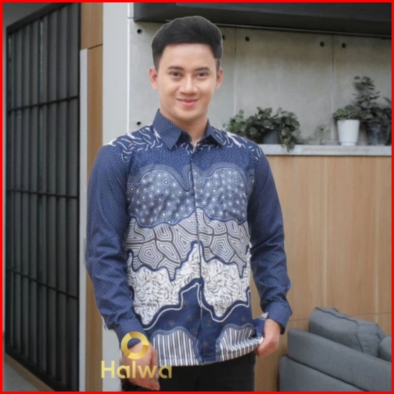 Kemeja Batik Pria Lengan Panjang Warna Abu Abu