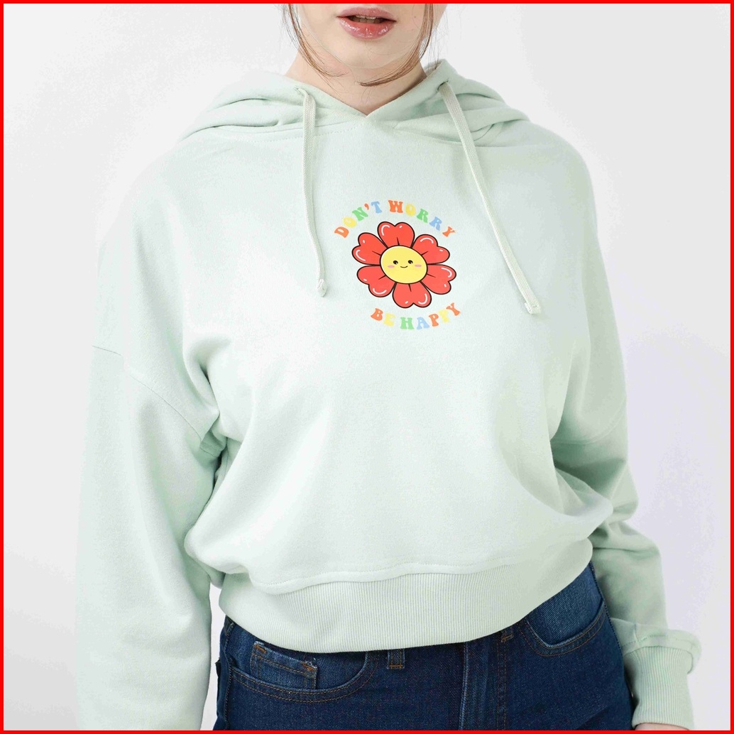 Aerostreet Hoodie Oversize Crop Top Dont Worry Light Green Sweater Jumper 1d002