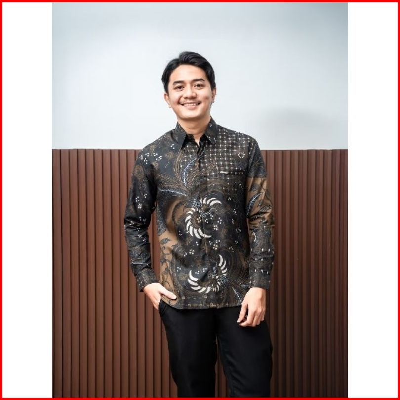 Batik Pria Kemeja Batik Lengan Panjang M L Xl Xxl Terlaris Warna Hitam