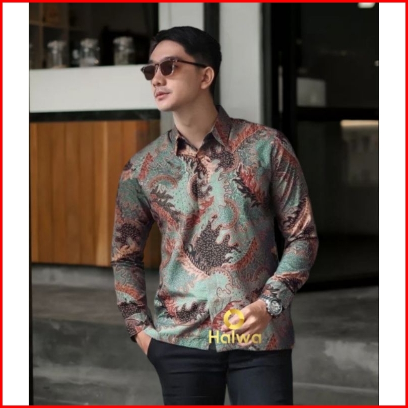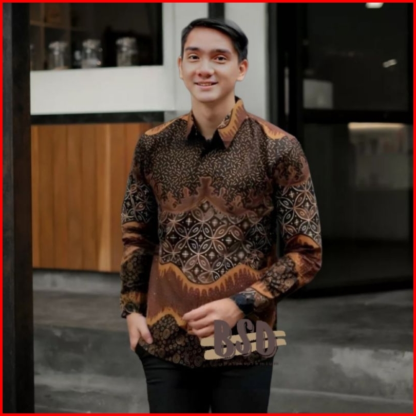 Kemeja Batik Pria Lengan Panjang Cowok Baju Atasan Katun