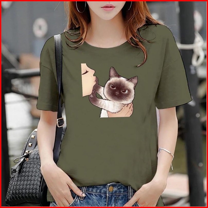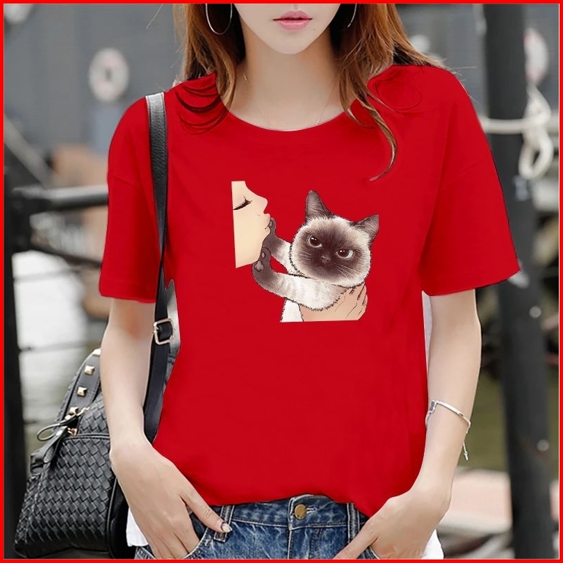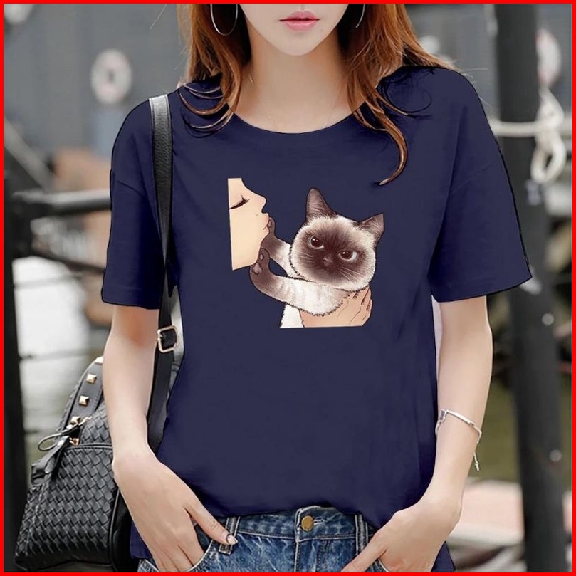 Kaos Wanita Oneck Cute Cat Cotton Combed 30s